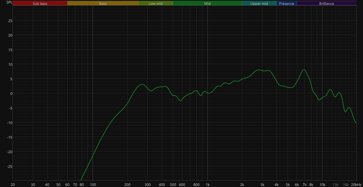 Середина при этом подается крайне неравномерно, с заметным акцентом на ее верхнюю часть. Это повышает разборчивость вокала и создает впечатление большей громкости, чем есть на самом деле. Однако такая подача лишает звук естественности — его характер в итоге напоминает звучание старой «радиоточки». ВЧ-регистр заметно смещен на задний план, при этом в области 7-8 кГц сделан акцент, который потенциально мог бы добавить яркости и эффектности. На практике же он чаще приводит к излишне подчеркнутым сибилянтам.