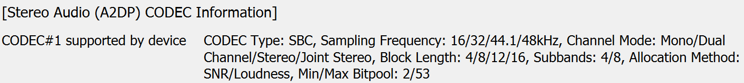 После активации Bluetooth-подключения колонка несколько секунд пытается соединиться с уже «знакомыми» устройствами, если не получается — запускает режим сопряжения. Далее все происходит стандартным образом — через меню используемого гаджета. Полный список поддерживаемых кодеков и их режимов мы традиционно получили с помощью утилиты Bluetooth Tweaker.