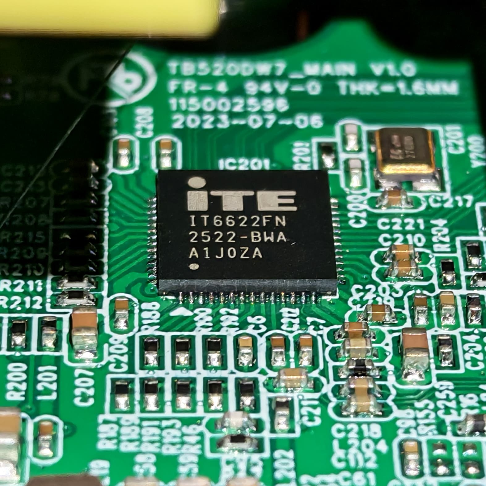 За обработку HDMI-сигнала отвечает чип IT66021FN производства ITE Tech. В качестве аудиопроцессора выступает Airlyra SPA300N (Sunplus Technology). Ну а поддержку Bluetooth-подключения обеспечивает BP2P861PUD производства Zhuhai JieLi Technology.