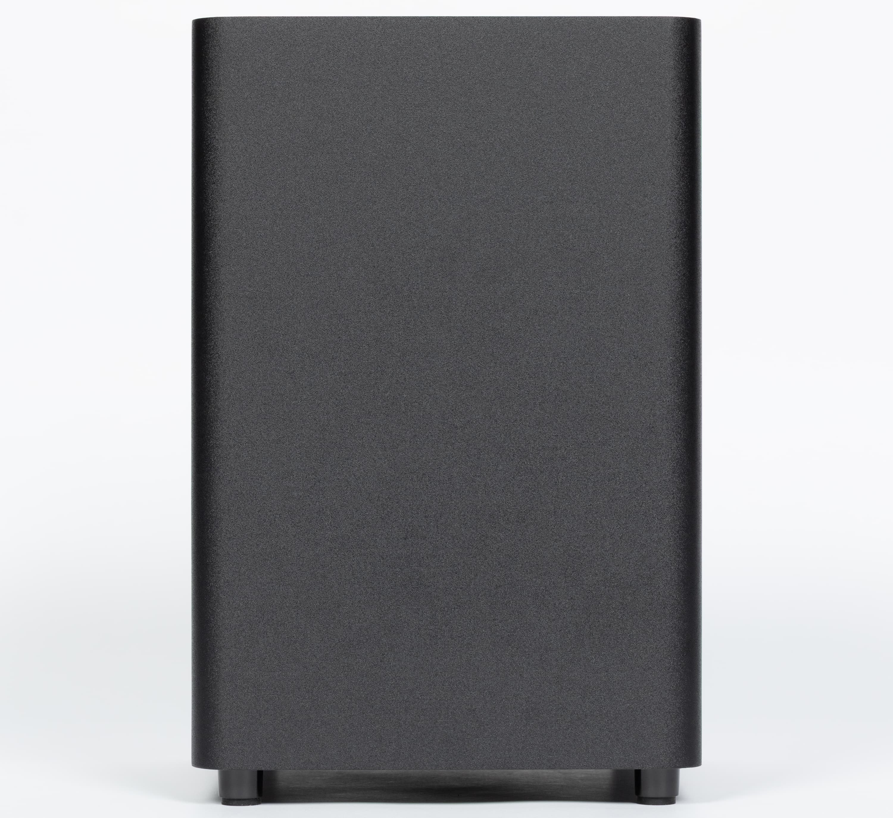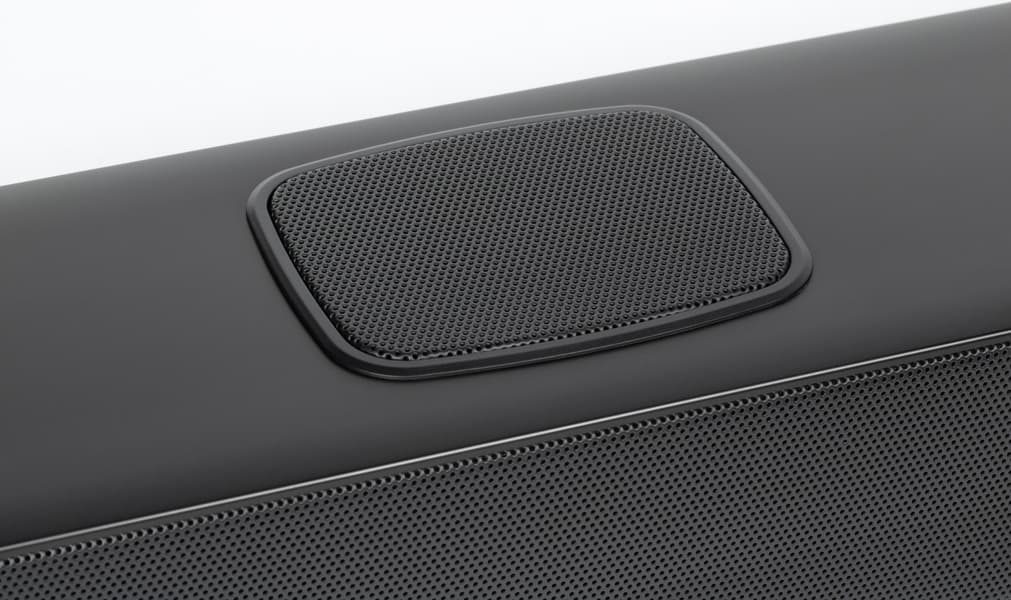 В саундбаре использовано семь динамиков. Три фронтальных формируют центральный, левый и правый каналы. Динамики объемного звучания вынесены в торцы и на верхнюю панель корпуса, их посадочные места повернуты под небольшим углом к слушателю, чтобы улучшить локализацию эффектов.