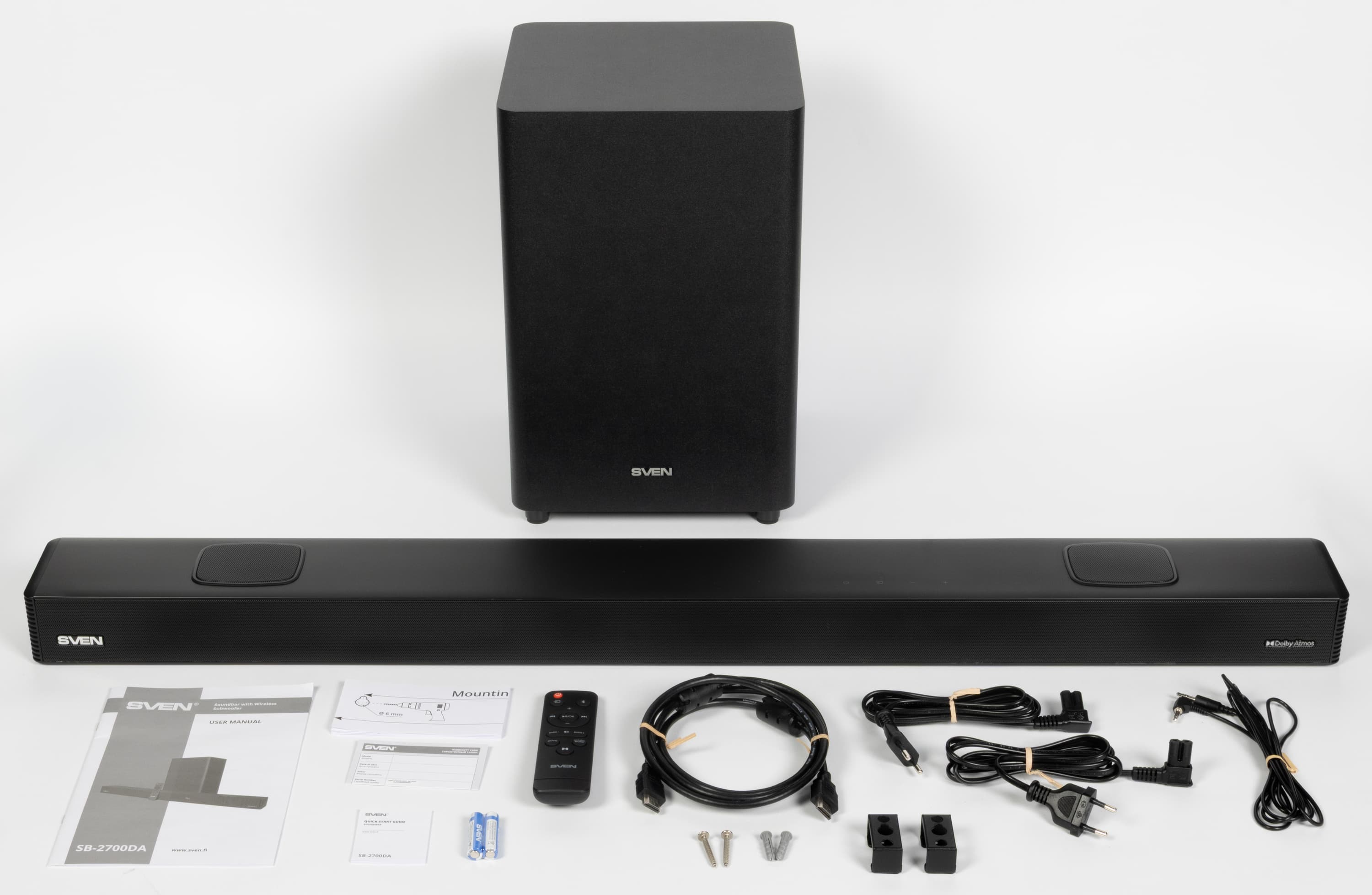 Саундбар с беспроводным сабвуфером SB-2700DA, о котором сегодня пойдет речь — решение нового для Sven уровня как по стоимости, так и по возможностям. Это уже устройство из среднего ценового сегмента, но с внушительным набором характеристик: высокой заявленной мощностью, поддержкой Dolby Atmos, семью динамиками в саундбаре и виртуальным 3D-звучанием. С учетом всего этого цена выглядит вполне разумной, а то и сравнительно невысокой — многие конкуренты за нечто похожее просят заметно больше. Лишь бы всё еще и работало как надо, но это мы как раз сейчас и проверим.