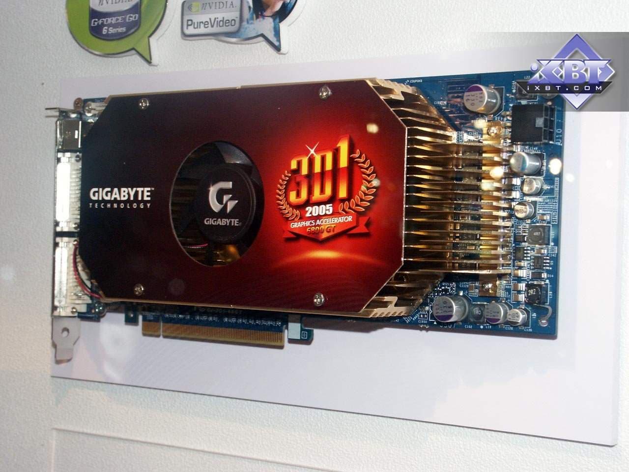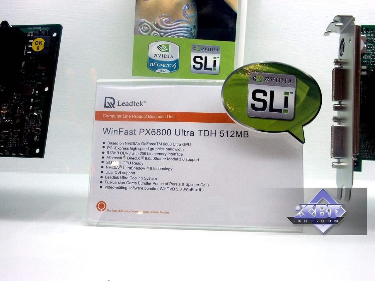 | Опять-таки, подробно о стенде этой компании можно прочитать в уже вышедшем на нашем сайте материале. Я лишь коснусь пары моментов: представлена видеокарта 3D1 но с двумя 6800GT (хотя мне как-то не верится, что на такой PCB разработчики смогли уместить два комплекта и развести 2×256бит. Как говорится, меня гнетут тайные сомнения, что под таким огромным кулером все же скрывается обычный 3D1 на двух 6600GT.) Ну в остальном, стенд представляет большой ассортимент всем хорошо известных системных и видеоплат. | ![]() |