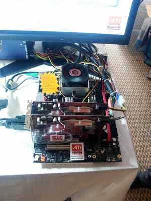 Разумеется, был показан и CrossFire (эта технология, напомню, демонстрировалась на всех стендах партнеров ATI). А также новые продукты в области Low-End сегмента: X550, X300SE (новый дизайн).