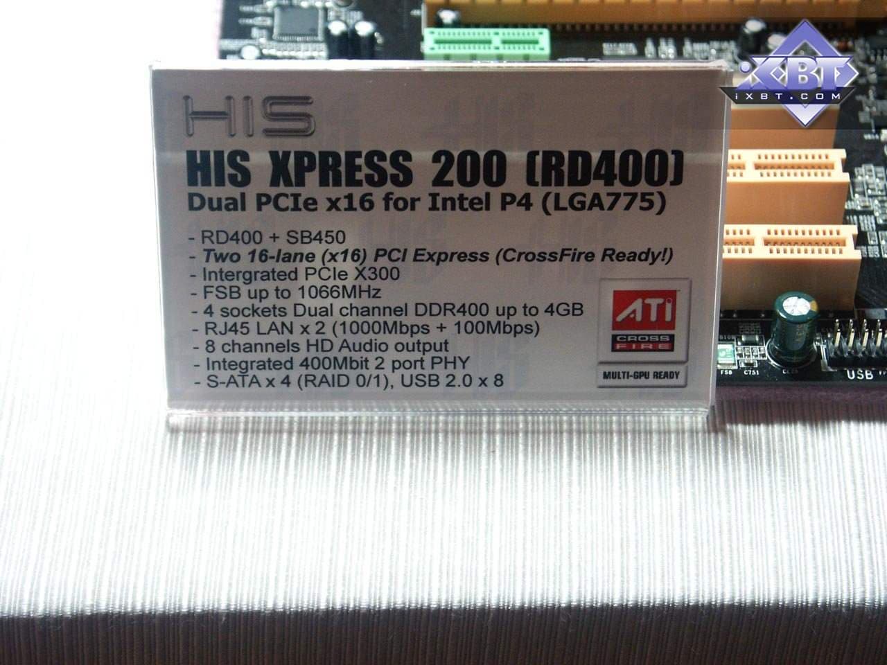 Компания HIS, как и Intel, Sapphire и др. не имела своего стенда в павильонах, а ограничилась лишь комнатами в отеле Hayatt, однако экспозиция была очень интересной. Прежде всего, это конечно же, материнские платы. Да-да, HIS также будет выпускать системные платы, разумеется, на базе чипсетов ATI. Уже было представлено две платы на базе новых продуктов канадской компании.