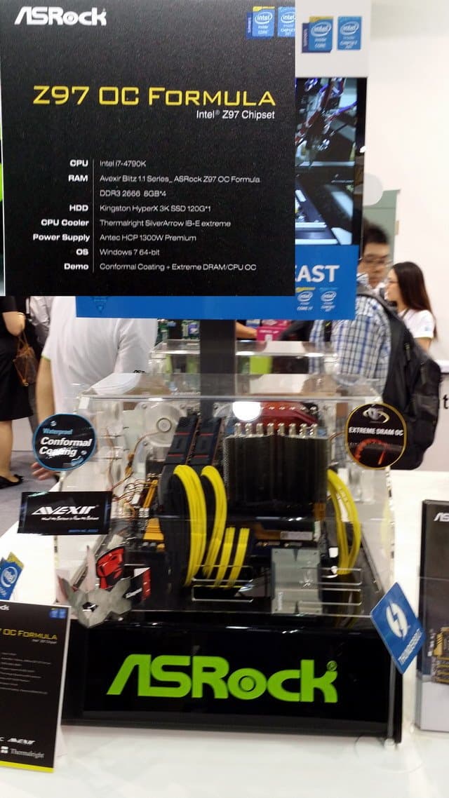 На самом стенде ASRock все это демонстрировалось. Откровенно говоря, даже если посмотреть на характеристики Z97 и H97, то особых отличий мы не увидим. По сути один и тот же чипсет, разделенный по цене на «более крутой» и «менее крутой». Считается, что Z97 более «лоялен» к разгонам и иным оверклокерским штучкам, хотя могу предположить, что вопрос лишь в заложенных оверклокерских штучках в том или ином BIOS, ну и в архитектуре и особенностях той или иной материнской платы. Понятно, что даже из одного Z97 в компании ASRock умудрились создать три флагманские материнские платы. Отличаются они именно разными возможностями по разгону, особенно касается автоматических функционалов в этом плане, когда частоты регулируются автоматически BIOS в зависимости от состояния платы (поэтому опять же заложены разные возможности по мониторингу: количество температурных датчиков, их размещение, мониторинг частот врашения вентиляторов и т.д.). Разумеется, у материнских плат разный набор слотов, портов и т.д.