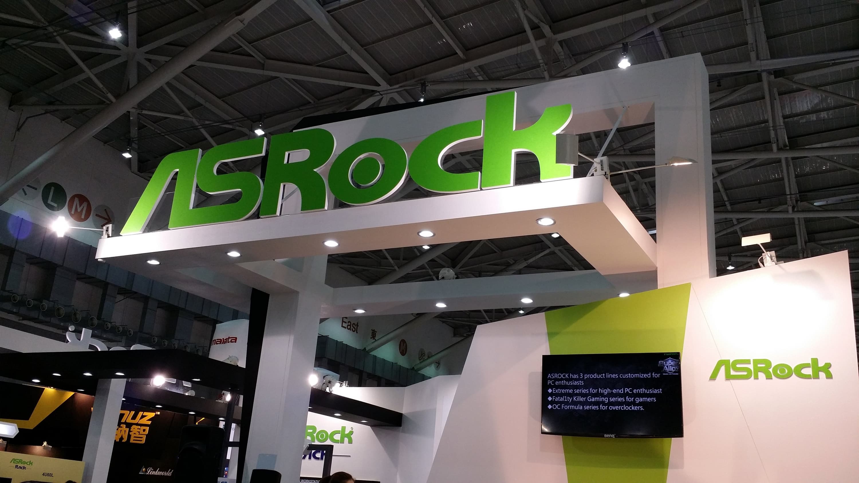 На этом я закончу рассказ о стенде компании Transcend. Пересекаем выставочный зал и попадаем к ASRock.