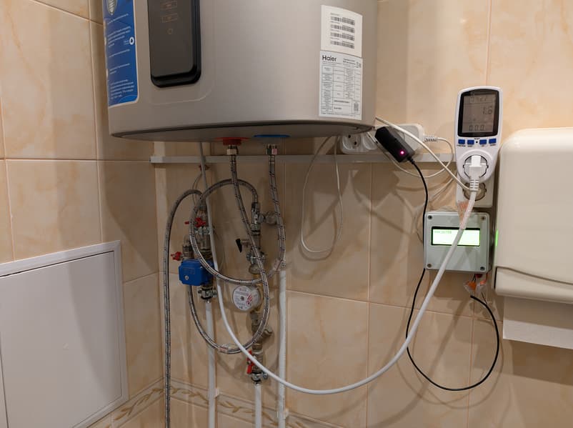 Чтобы измерить, за какое время вода в бойлере достигнет максимальной температуры, мы заполнили бак водопроводной водой с температурой около 20 °C, включили нагреватель в режиме «Max» на полную мощность и засекли время. В течение этого теста раз в секунду производились измерения потребляемой прибором мощности.