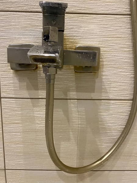 Светлая кафельная плитка на стенах со временем нередко покрывается желтоватым налетом — последствием постоянного контакта с водопроводной водой и конденсатом. Мы решили проверить, насколько эффективно пароочиститель Hiomee справится с этой задачей. Для очистки использовали нейлоновую распылительную насадку и стальную щетку.