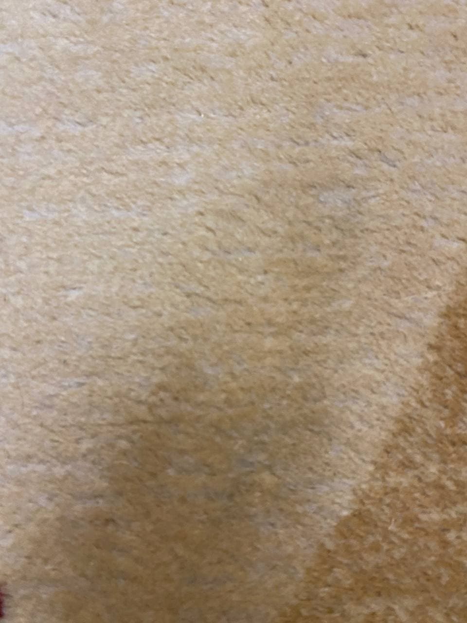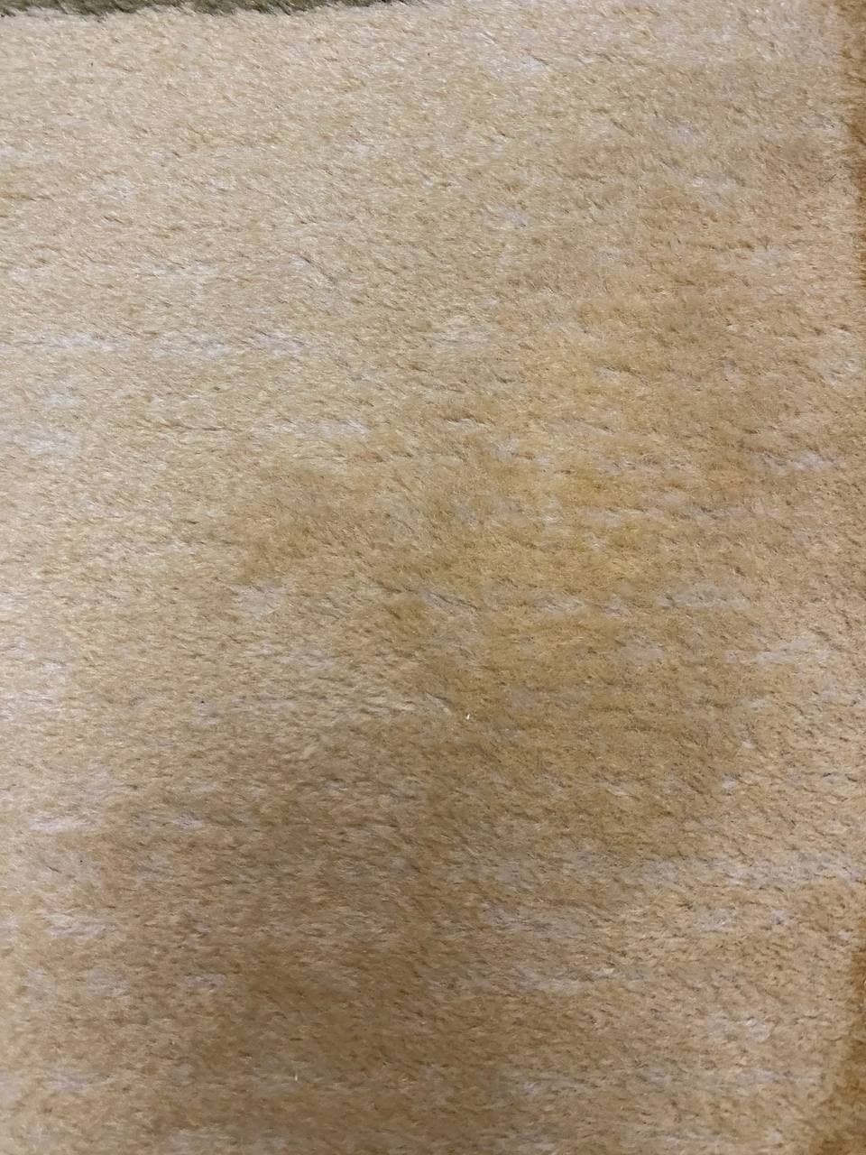 На фото видно слегка изменившийся фон ковра в местах, где проводилась очистка: здесь расположены два очищенных пятна. После высыхания мы отметили, что участки ковра, подвергшиеся обработке, слегка изменили оттенок, стали чуть светлее, словно слегка выцвели. Это подтверждает рекомендацию производителя: перед обработкой ковров или тканевых поверхностей следует протестировать прибор на небольшом участке, чтобы убедиться, что материал не изменит цвет.