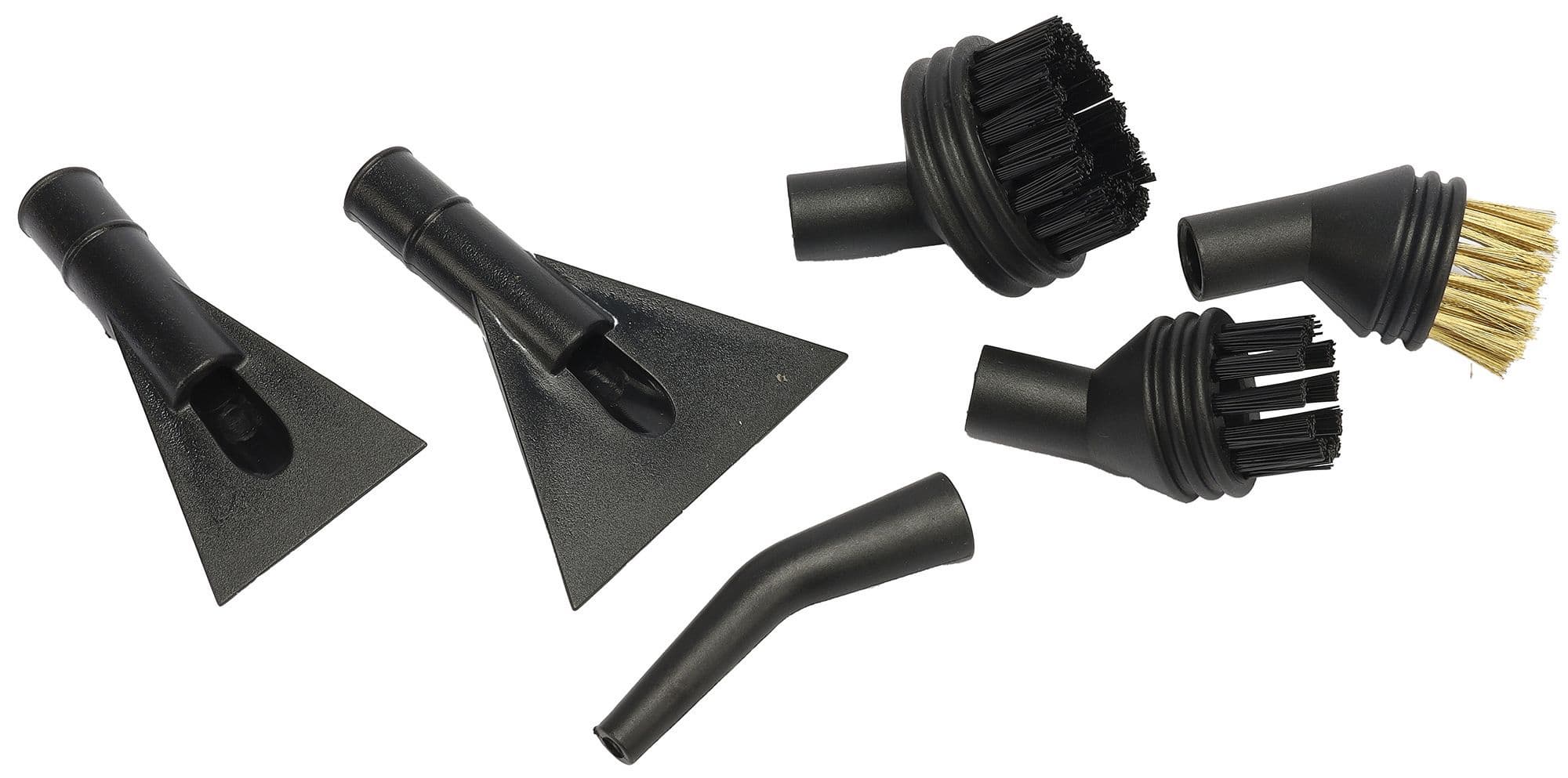 | Аксессуары | удлиненный шток распылителя, оконный скребок, оконный скребок с насадкой из белой микрофибры, сопло высокого давления, нейлоновая распылительная насадка, скребки для сильных загрязнений шириной 40 и 64 мм, стальная щетка, нейлоновые щетки для сбора волос и шерсти диаметром 25 и 35 мм |