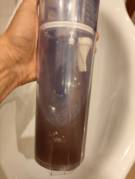 Система фильтрации работает как положено. Грязная вода скапливается в нижней части контейнера...