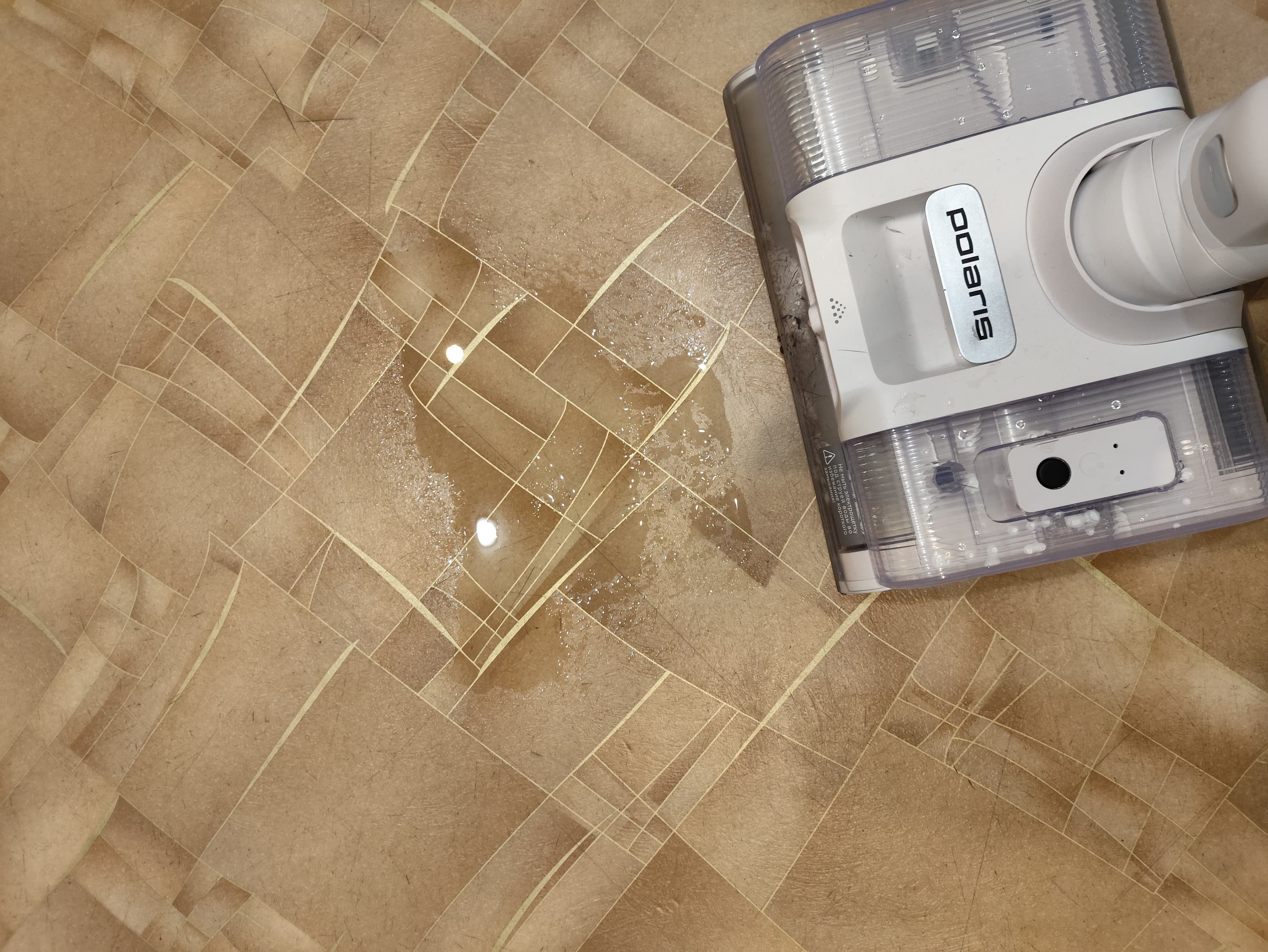 Качество уборки при всем этом оказалось на высоком уровне: капель и разводов на полу не остается, а насадка для влажной уборки способна проходить в непосредственной близости от стен и плинтусов. Стандартные загрязнения удаляются с первого же раза.