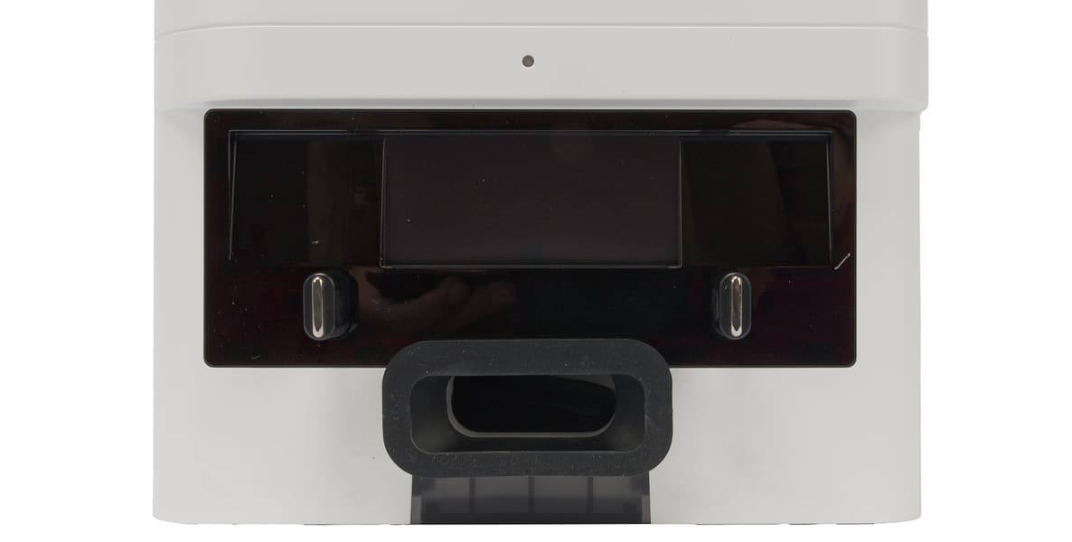 Теперь рассмотрим станцию самоочистки. Она выполнена в том же дизайне, что и робот — из белого матового пластика.
