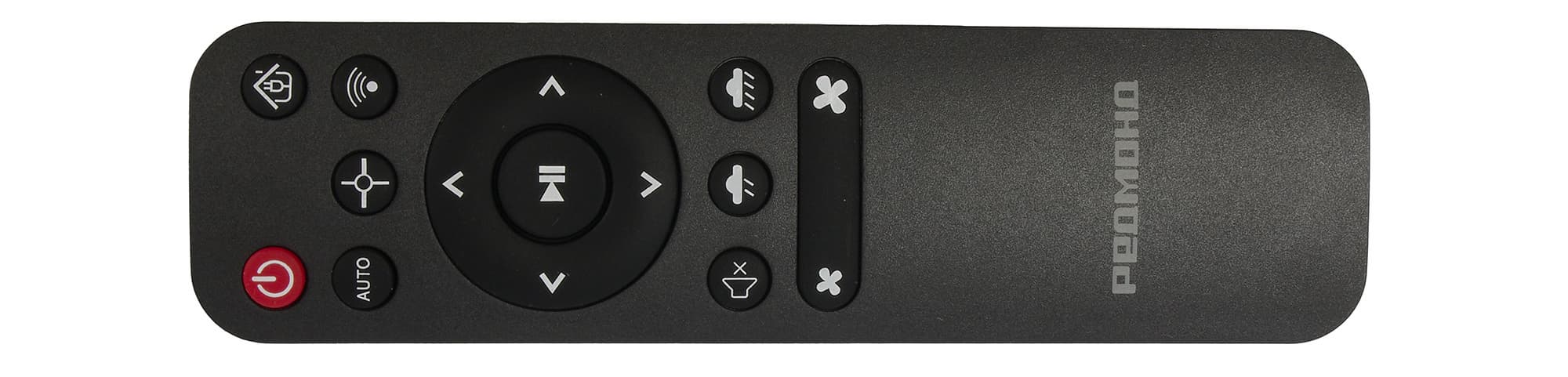 На передней панели мы видим логотип Redmond. Под ним находится светодиодный индикатор.