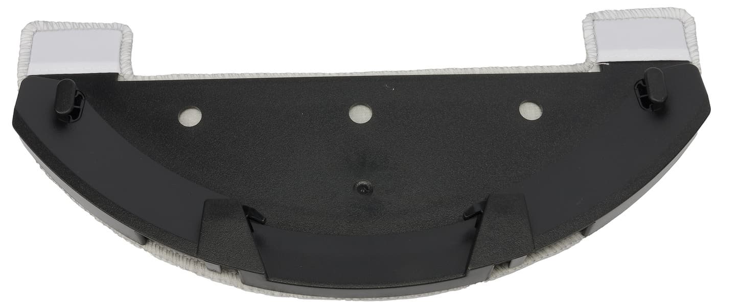 Пластиковая «подошва» с липучками-велкро, к которым цепляется салфетка для влажной уборки, крепится к контейнеру для мусора/воды с помощью двух защелок. Снимается с легким усилием.