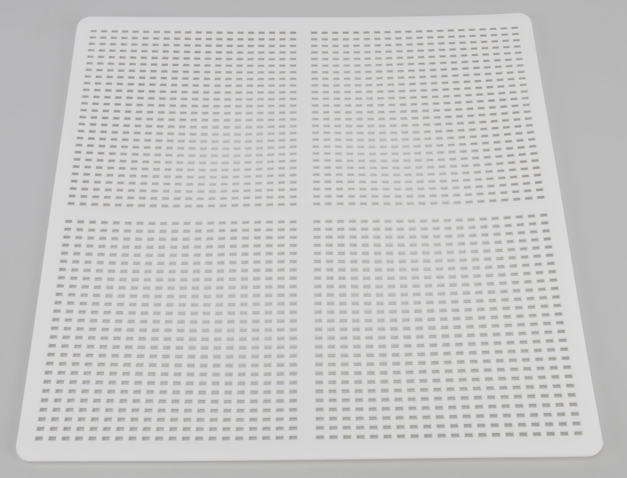 Конструкция позволяет сушить продукты разного размера, для этого достаточно просто вытащить лишние решетки. Решетки размером 39×39 см выполнены из нержавеющей стали. Сетка крепкая, при надавливании не деформируется.