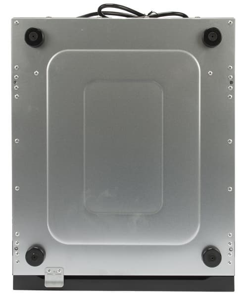 С тыльной стороны размещены отверстия для вентиляции, шильдик с технической информацией о приборе и место крепления шнура электропитания длиной 1,2 метра. При хранении устройства вилку можно закрепить в специальном углублении в правом верхнем углу.