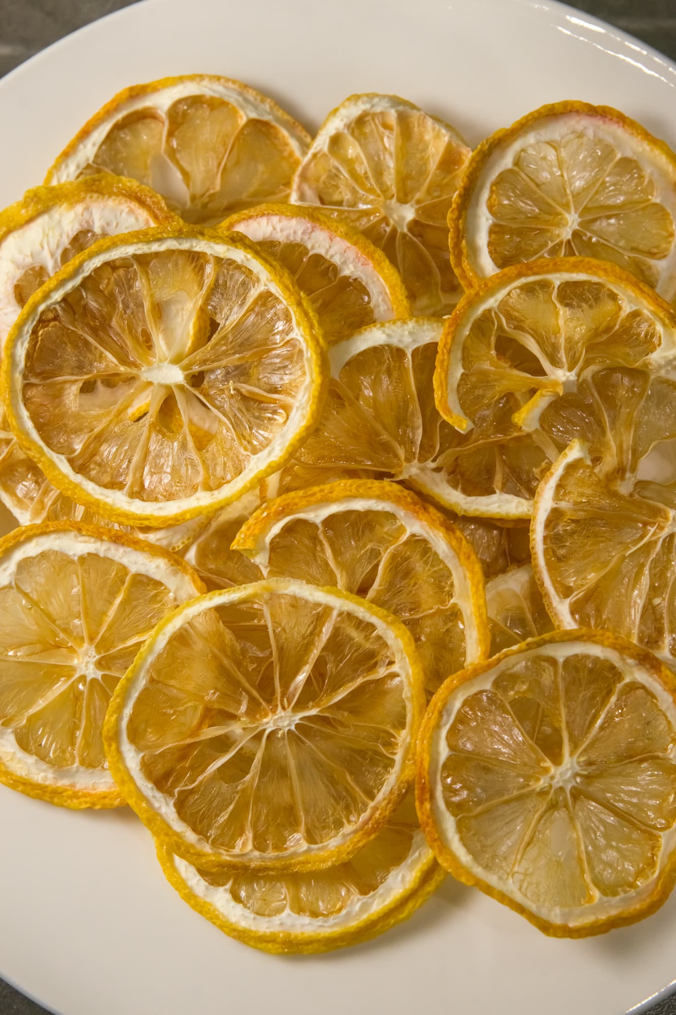 Повышаем температуру и переходим к грибам и цитрусовым. В авторежимах нашего дегидратора оба продукта предлагается сушить при 75 °C, но эта температура скорее подходит более влажным лесным грибам, а не обычным магазинным шампиньонам, как в нашем случае, да и лимоны при таком сильном нагреве могут потемнеть, так что цифру мы выбрали поскромнее — 55 °C.