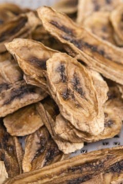 Нарезанный тонкими ломтиками фрукт сушился в специально предусмотренном для него режиме. По умолчанию для бананов дегидратор выставляет 75 °C на 12 часов.