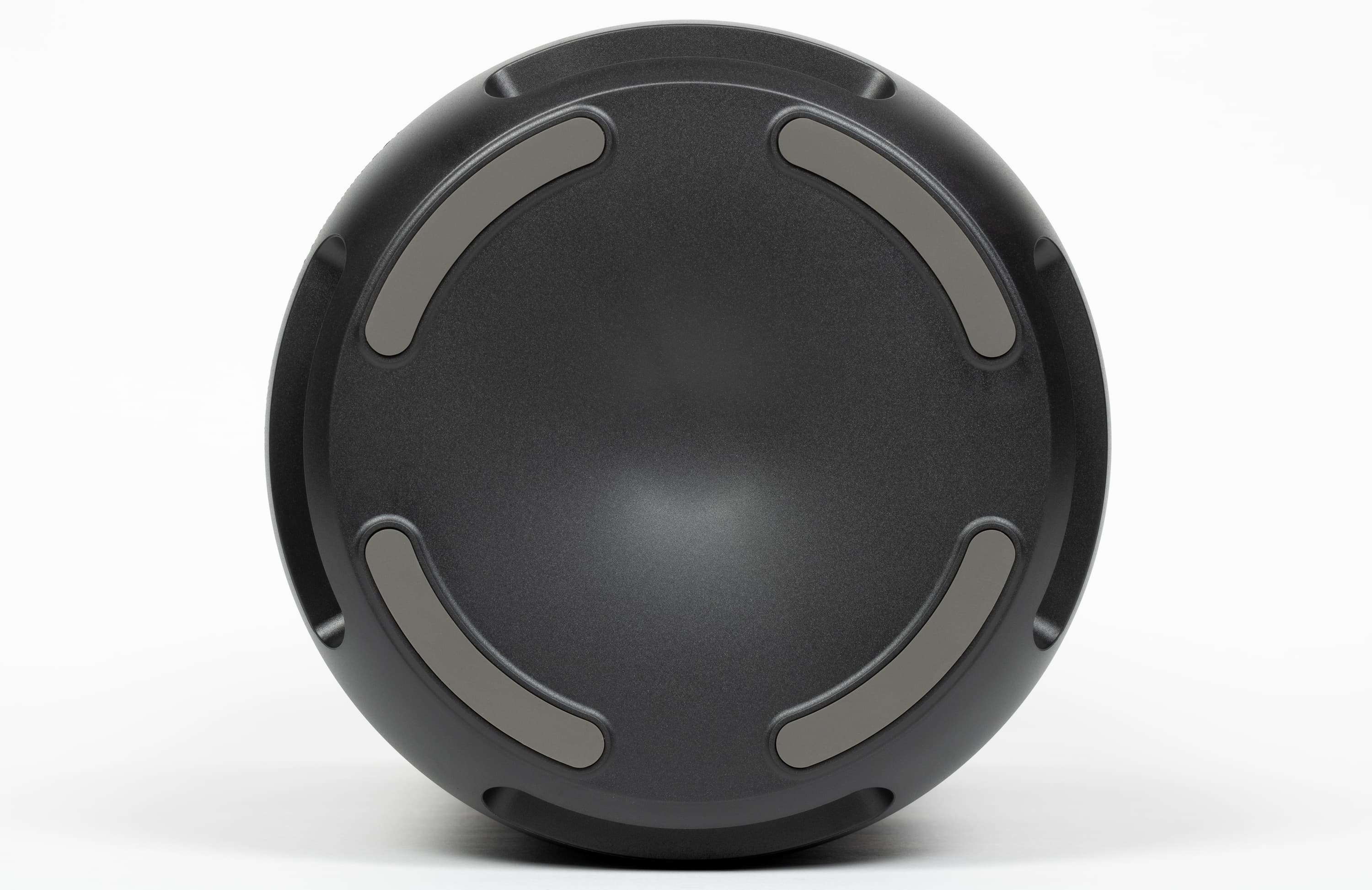 Сходным образом подсветка организована и в нижней части корпуса. Основание с крупными прорезями приподнимает колонку над поверхностью, обеспечивая эффективную работу басового динамика диаметром 5,35 дюйма, размещенного в нижнем торце и направленного вниз. В центре основания также находится конусообразный рассеиватель, который подсвечивается сверху.