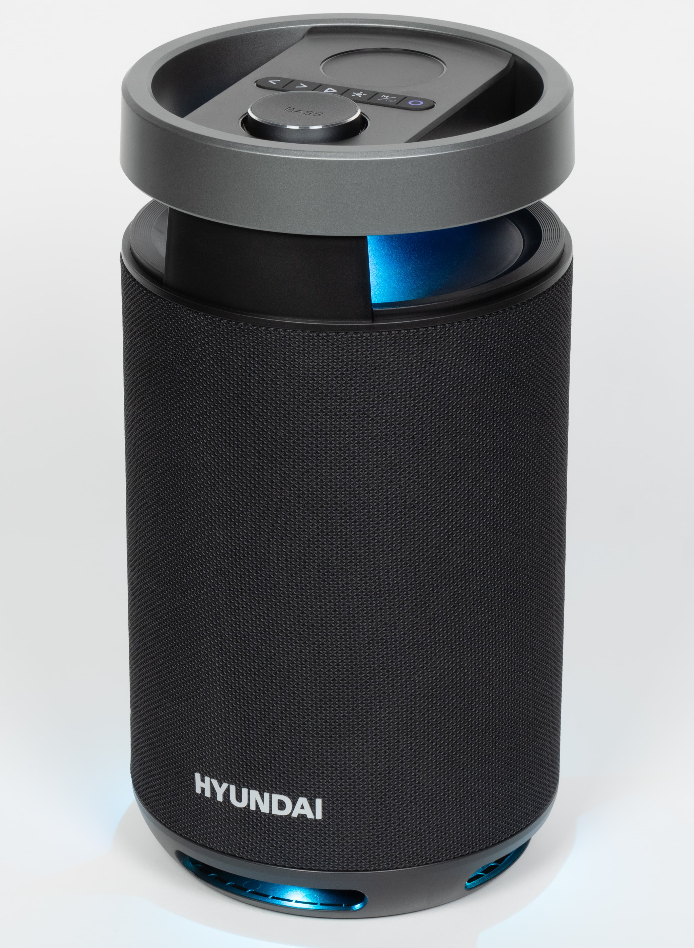 Но встречаются и нестандартные решения, которые не вписываются в привычные категории. Один из таких вариантов — Hyundai Select H-MC1241, колонка с неожиданным дизайном и нетривиальным подходом к конструкции. Она выполнена в цилиндрическом корпусе, по боковой поверхности которого размещены четыре ВЧ-динамика. Такое решение позволяет колонке играть на 360 градусов, заполняя звуком пространство вокруг. Необычная форма повлияла и на способ организации подсветки — она равномерно охватывает колонку и смотрится по-настоящему эффектно. В остальном перед нами классическая «вечериночная» акустика, обладающая всеми ключевыми преимуществами своего сегмента: несколькими вариантами подключения источников звука, защитой от влаги IPX5, автономностью до 10 часов и даже разъемом для микрофона, позволяющего петь караоке.