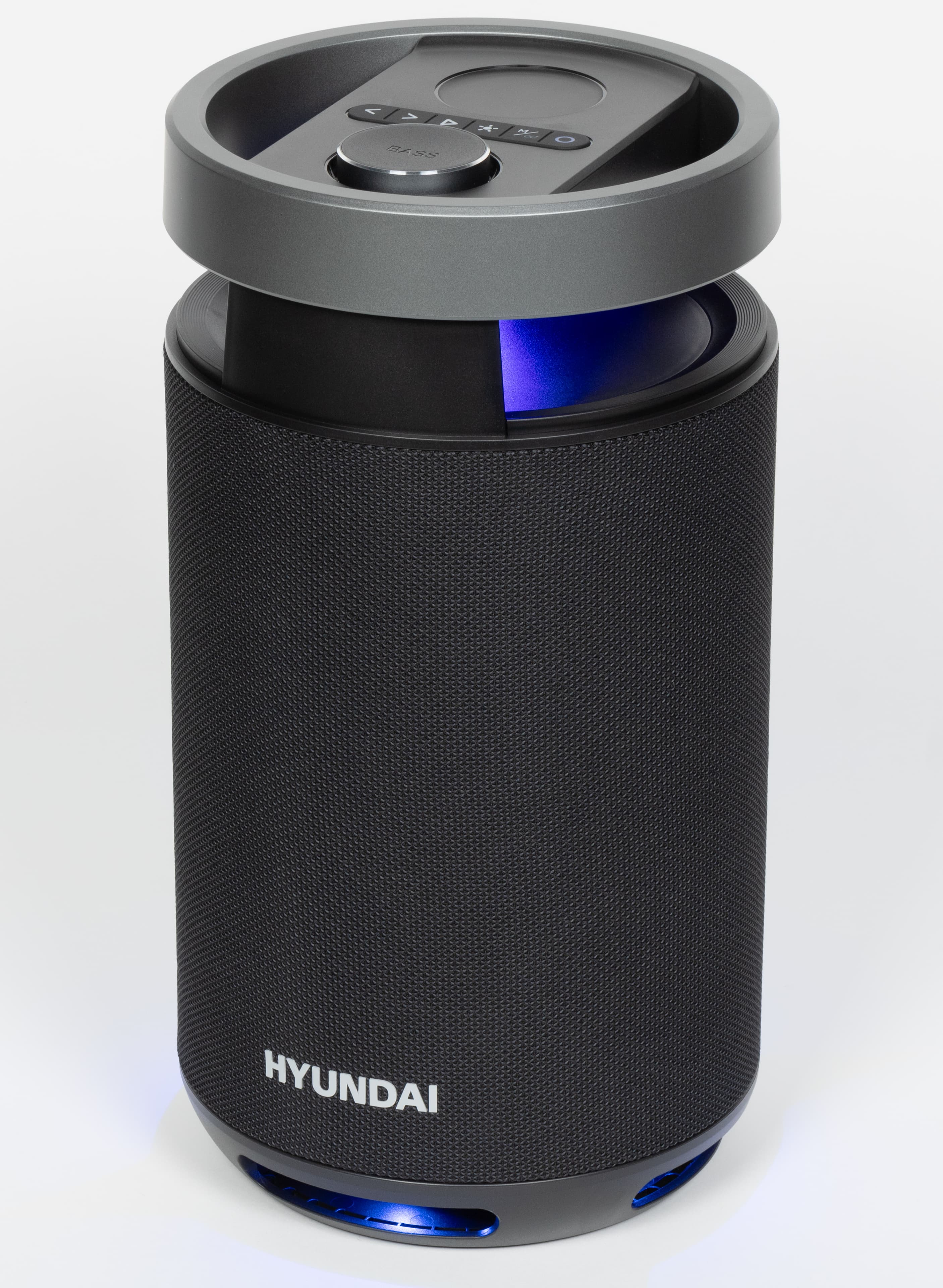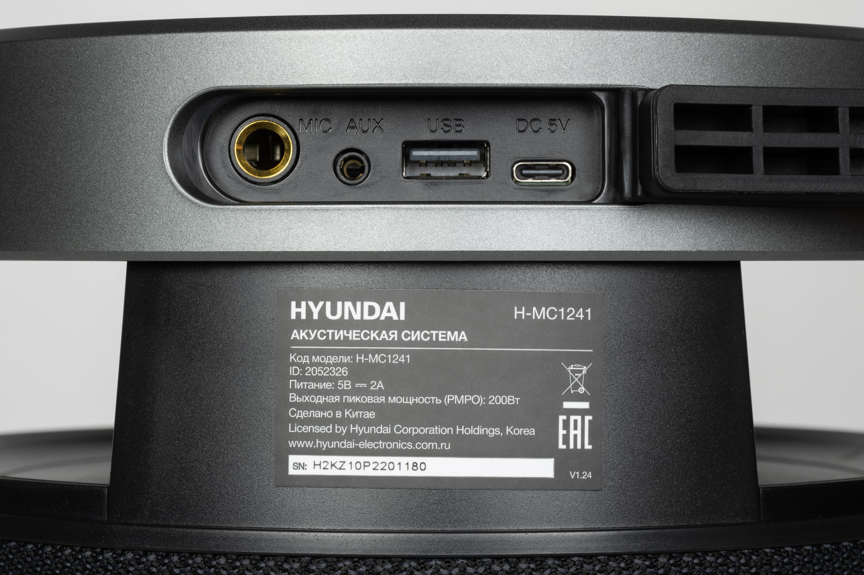 Hyundai Select H-MC1241 — мощная портативная колонка, которая отличается не только оригинальным дизайном и эффектной подсветкой, но и важными для повседневного использования параметрами: высокая автономность и быстрая зарядка делают ее удобной в обращении, а водозащита позволяет спокойно пережить даже легкий дождь. Но главная ее особенность — умение равномерно озвучивать пространство вокруг себя, превращаясь в настоящий центр вечеринки. Она будет уместно смотреться не только на дружеских посиделках с караоке, но и на танцевальном мастер-классе или уличном мероприятии для детей.
