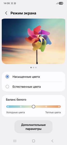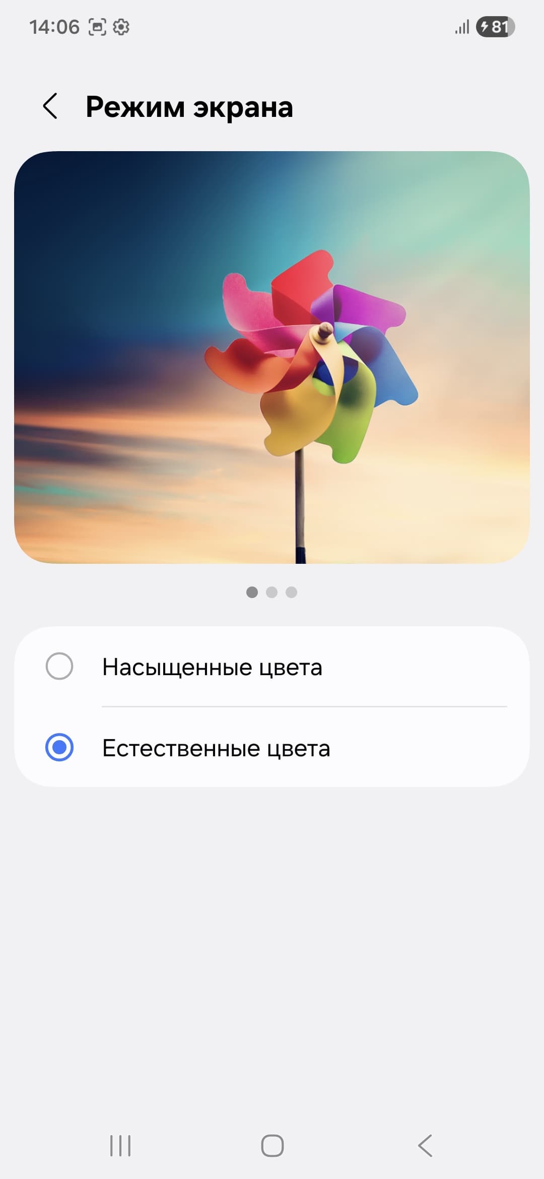 Фотография выше получена после выбора профиля Естественные цвета в настройках экрана, всего их два: