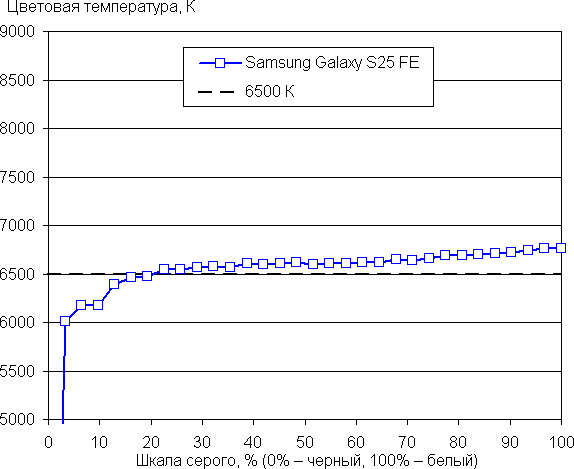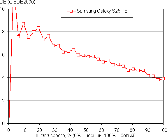 (Самые темные области шкалы серого в большинстве случаев можно не учитывать, так как там баланс цветов не имеет большого значения, да и погрешность измерений цветовых характеристик на низкой яркости большая.)