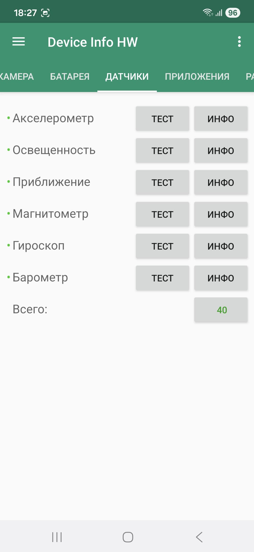 - Датчики приближения и освещения, магнитного поля, акселерометр, гироскоп, барометр