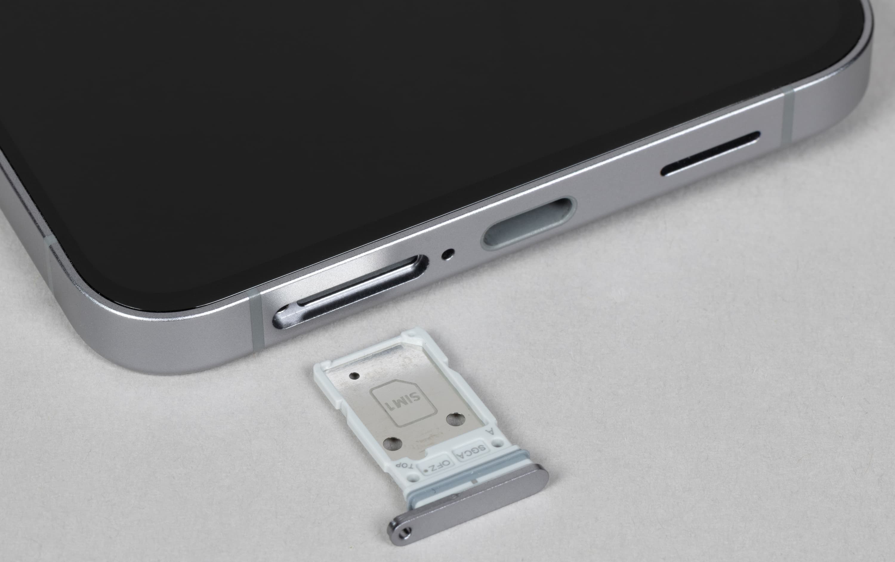 На торце снизу установлены динамик, разъем USB Type-C и микрофон. В выдвижной лоток можно установить карты Nano-SIM, для карты памяти microSD места не предусмотрено. Количество физических и виртуальных поддерживаемых SIM-карт зависит от модификации, их несколько для разных регионов.