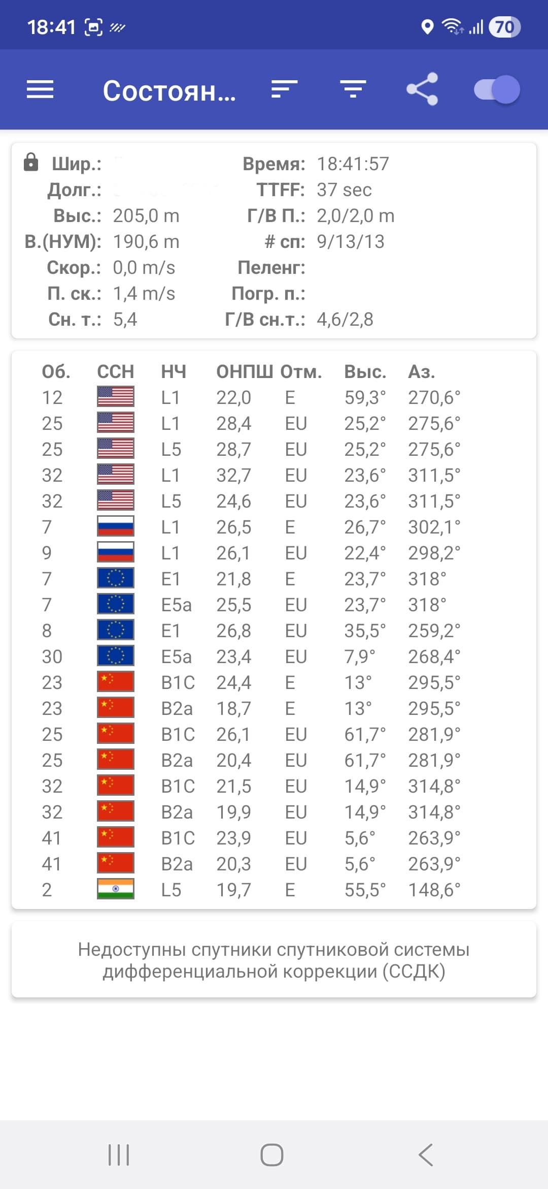 Двухканальный модуль спутниковой навигации работает с GPS, а также с Глонасс, BDS, Galileo и NavIC. Первые спутники при холодном старте обнаруживаются более-менее быстро.