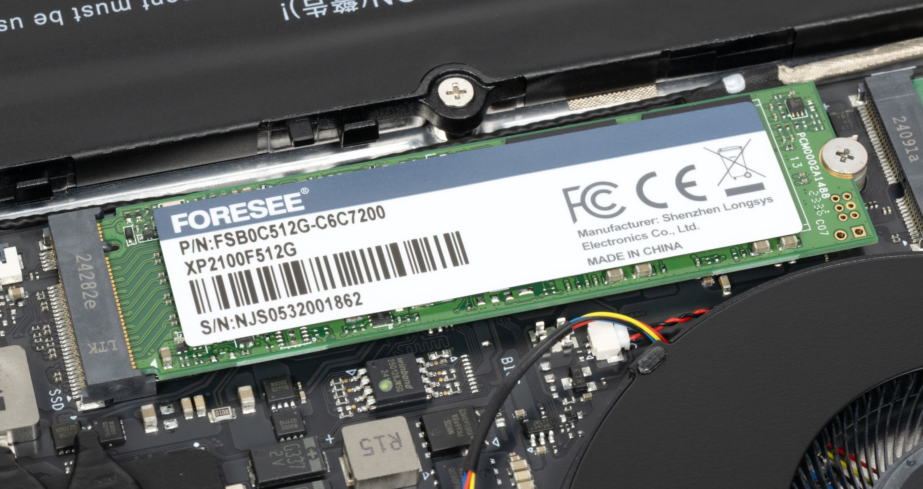 Системный NVMe-накопитель Foresee производства Longsys Electronics обладает вместимостью 512 ГБ (интерфейс PCIe Gen3 ×4).