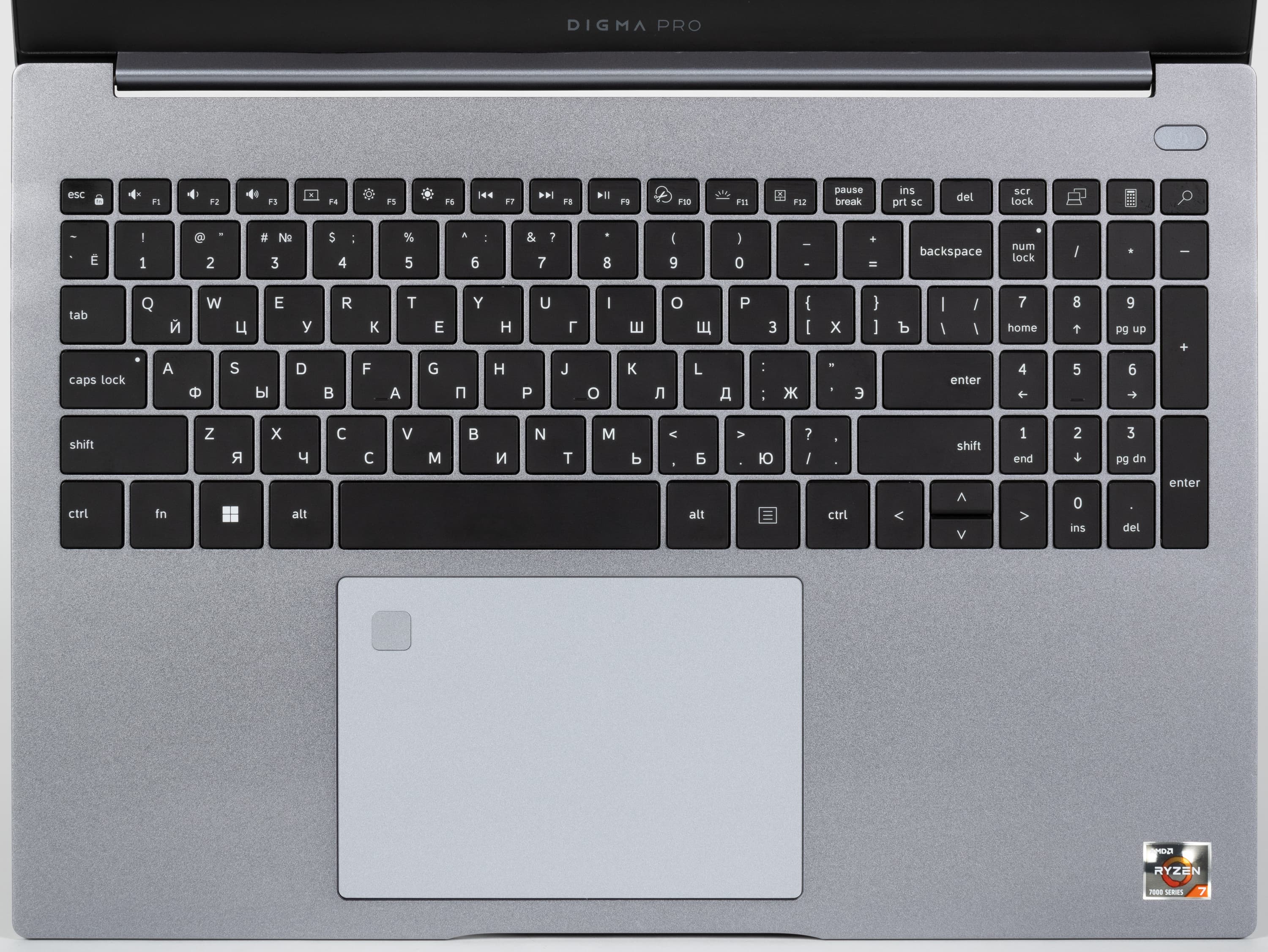 В верхнем левой углу имеется встроенный дактилоскопический сканер, позволяющий идентифицировать пользователя при входе в систему без необходимости ввода пароля.