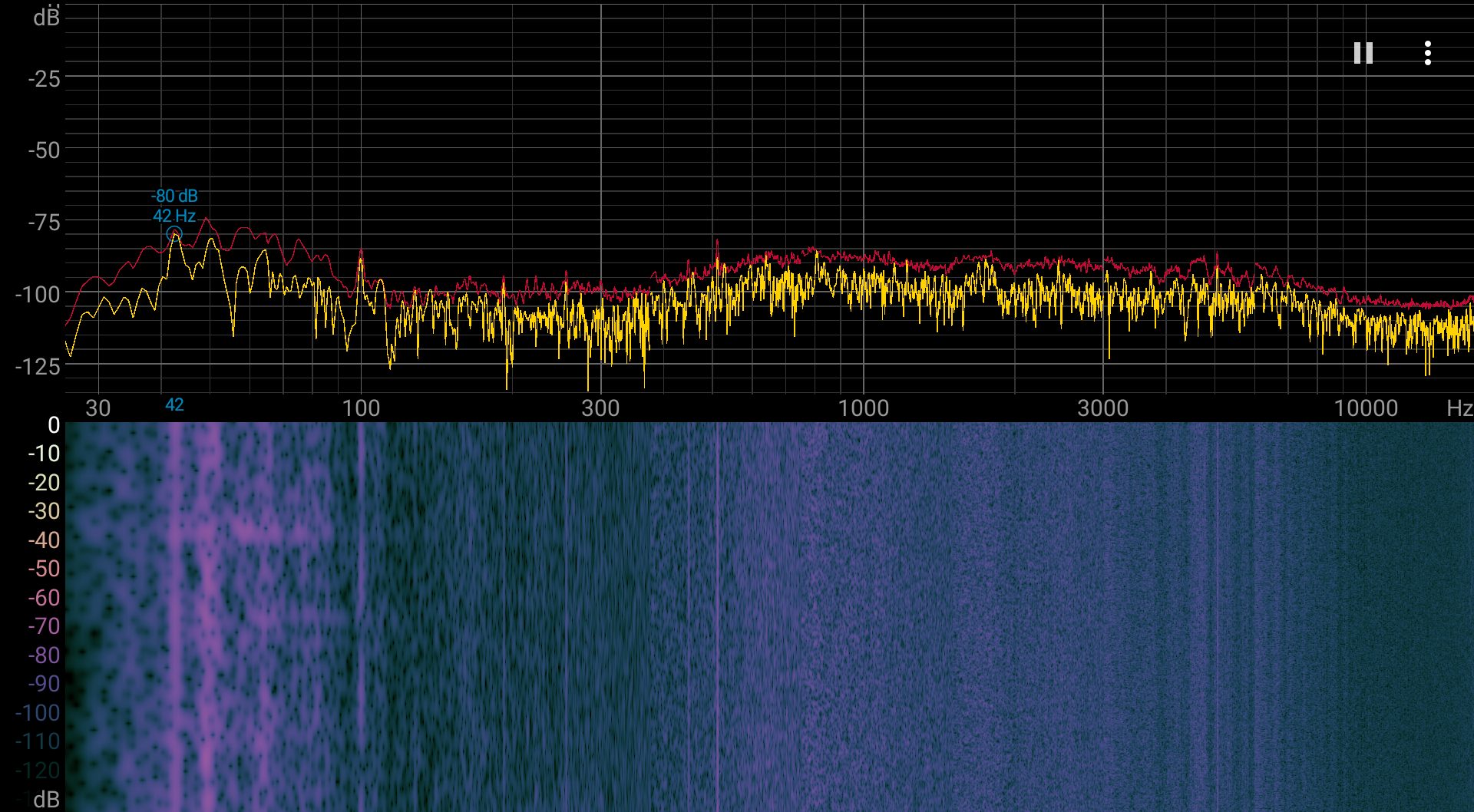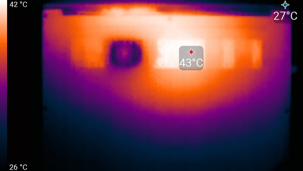 Если ноутбук не нагружать совсем, то его система охлаждения не может работать в пассивном режиме, однако шум при этом очень и очень низкий, и, например, в условиях офиса ноутбук будет совершенно не слышно. Характер шума даже под высокой нагрузкой ровный и раздражения не вызывает. Спектрограмма, полученная для максимальной скорости вентиляторов, достаточно ровная, и в диапазоне частот, где звуки могут вызывать особенное раздражение, выраженных пиков нет: