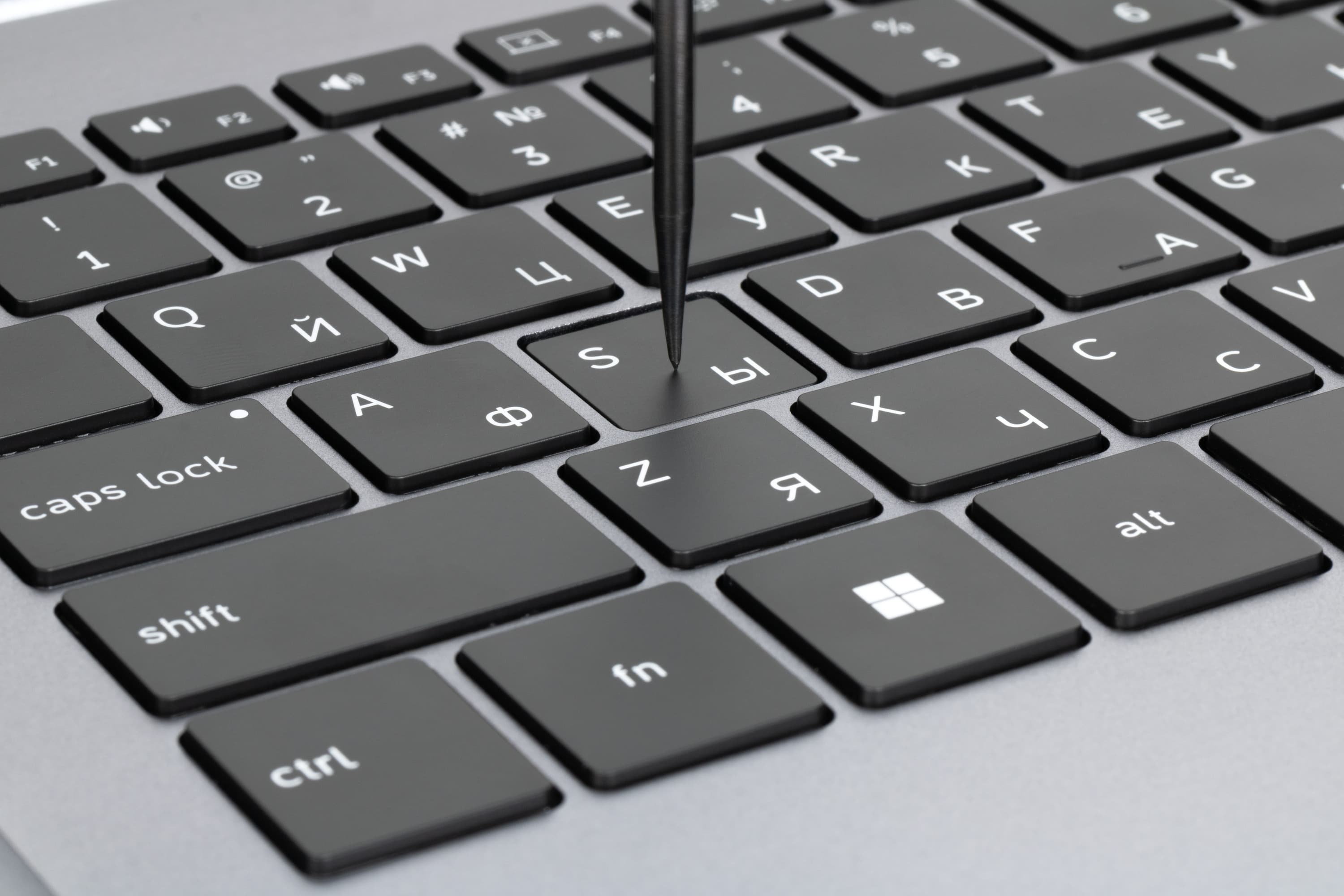 Производитель предлагает клавиатуру мембранного типа. Обработка нажатий осуществляется независимо (n-key rollover) — это означает, что система отреагирует на любое количество одновременно нажатых кнопок. По раскладке и функциональности она несколько уступает стандартной десктопной: отсутствуют выделенные Ins, End, PgUp, PgDn, Home, End. Зато Caps Lock и Num Lock оснащены собственными светодиодными индикаторами, а в верхнем ряду добавлены функциональные клавиши переключения вывода картинки с встроенного экрана на внешний, вызова калькулятора и поиска — все три маркированы соответствующими пиктограммами. Вообще же маркировка клавиш белым по черному отличается высокой контрастностью и хорошо читается даже при недостатке внешнего освещения. Символы обеих раскладок равноценны по размерам; их взаимное расположение на клавишах удачное: латинские символы в верхних левых углах, кириллица — в нижних правых.