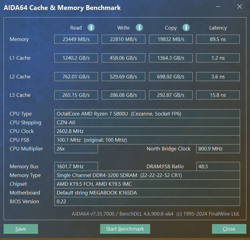 - Tecno Megabook K16S (см. наш обзор от 11.09.2024) — 1×16 ГБ DDR4-3200 (Foresee FD4AS3200CQGHC), одноканальный режим