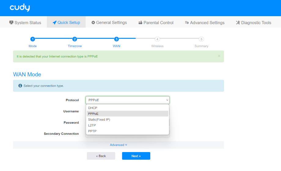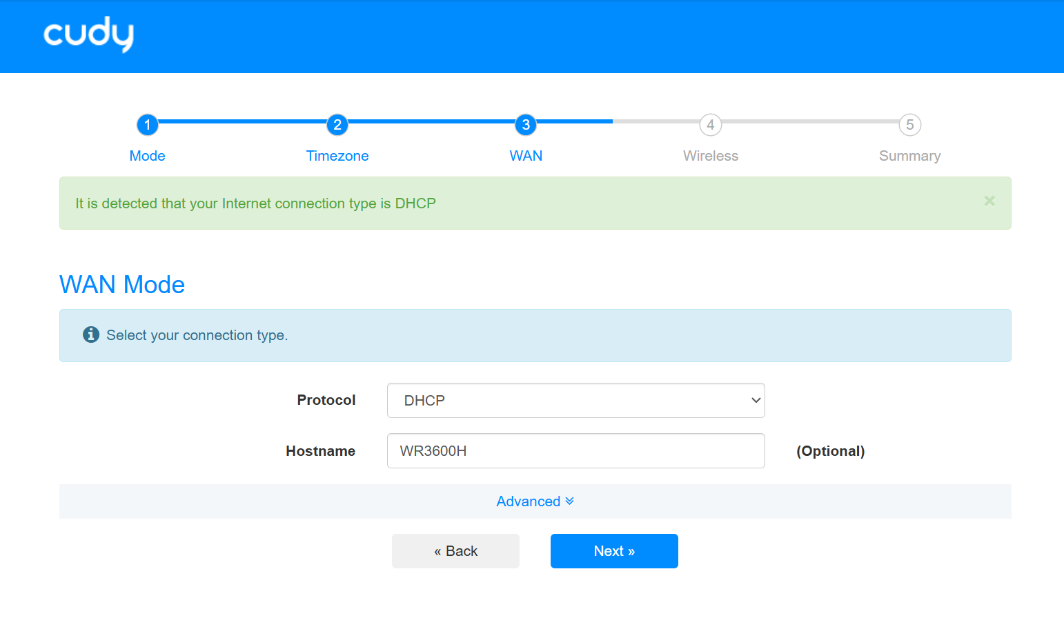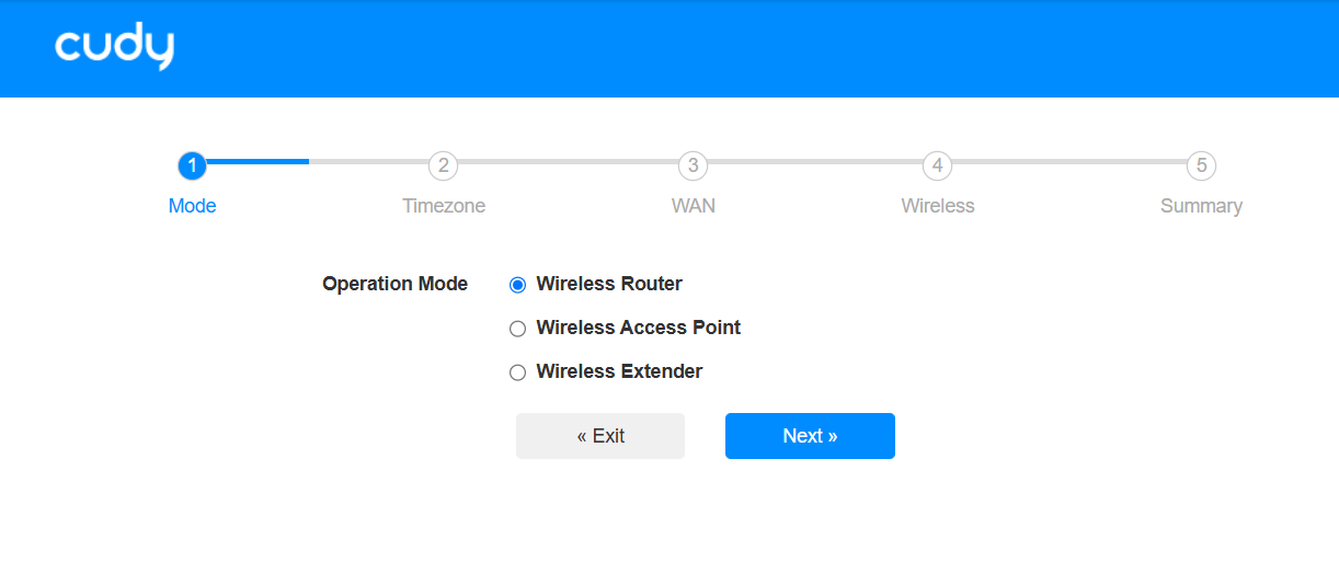 Следующий этап — выбор режима работы устройства: беспроводной роутер, беспроводная точка доступа, повторитель, или бустер (Wireless Extender).
