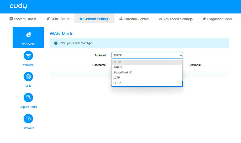 Подключение к интернету производилось через гигабитную оптическую сеть (GPON), волоконно-оптический кабель которой соединен с абонентским терминалом RV6699. Специфика протоколирования не позволила задействовать PPPoE, PPTP, L2TP на стороне провайдера. Удовольствуемся IPoE, тем более что он обеспечивает максимально возможные скорости передачи данных благодаря аппаратной, а не программной обработке пакетов.
