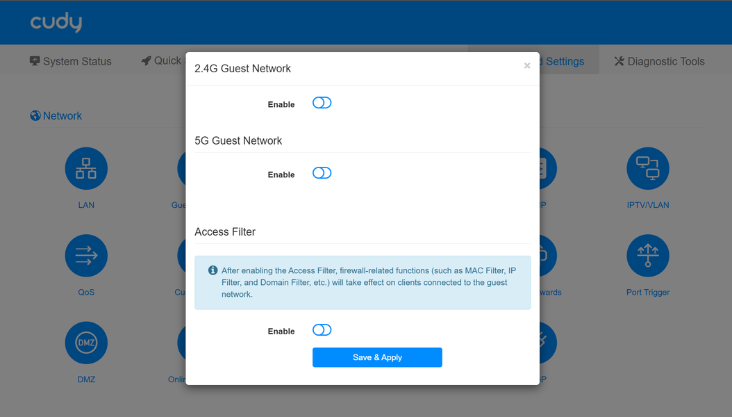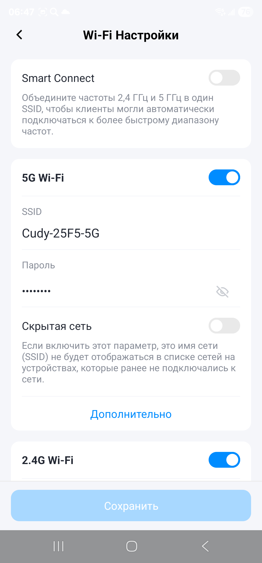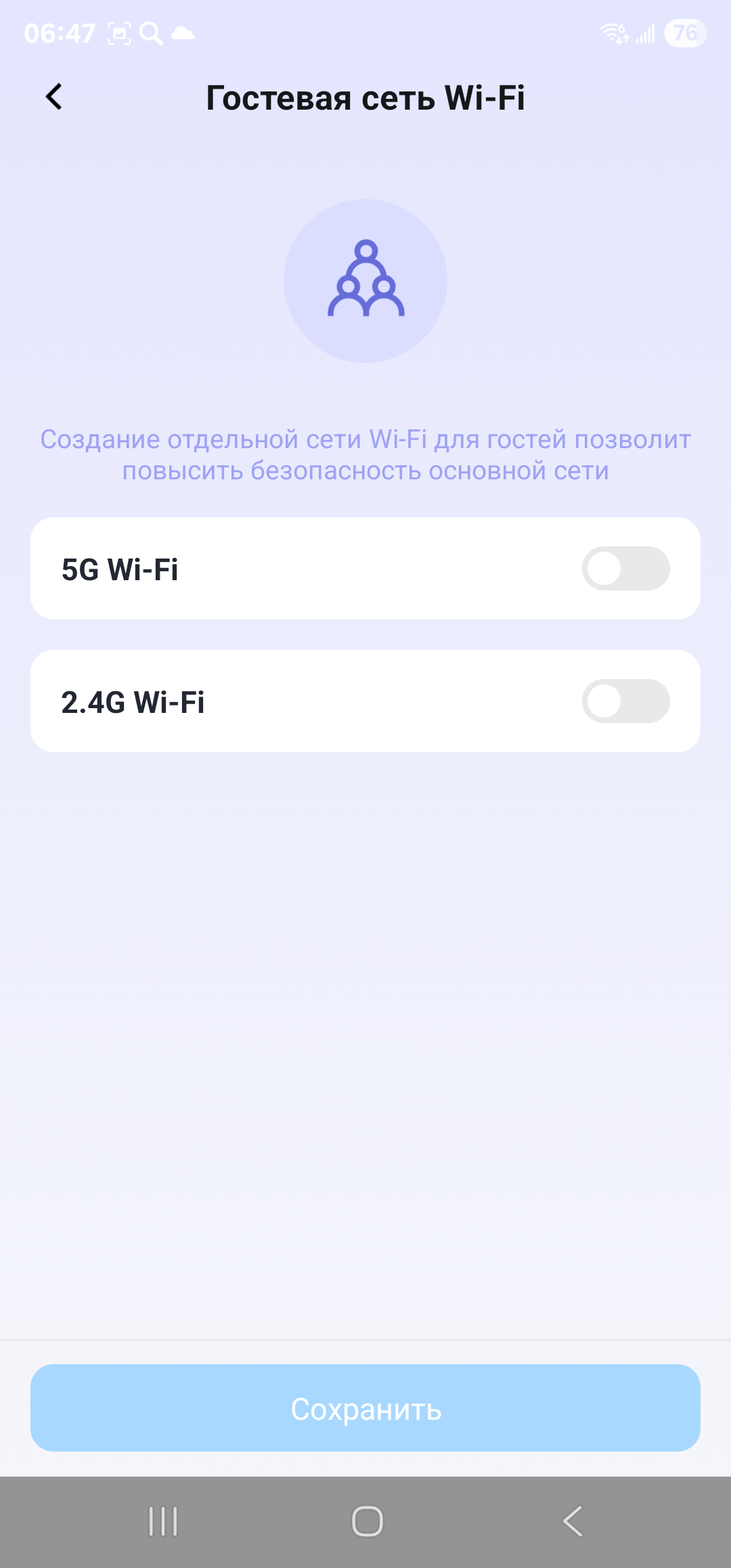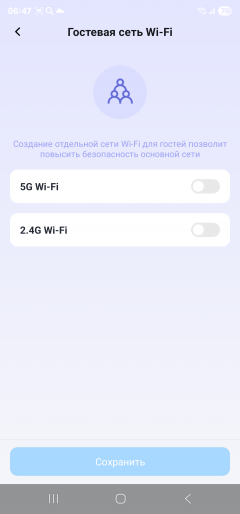 Активация «гостевых» сетей (доступных без ввода пароля) для обоих диапазонов радиосвязи.