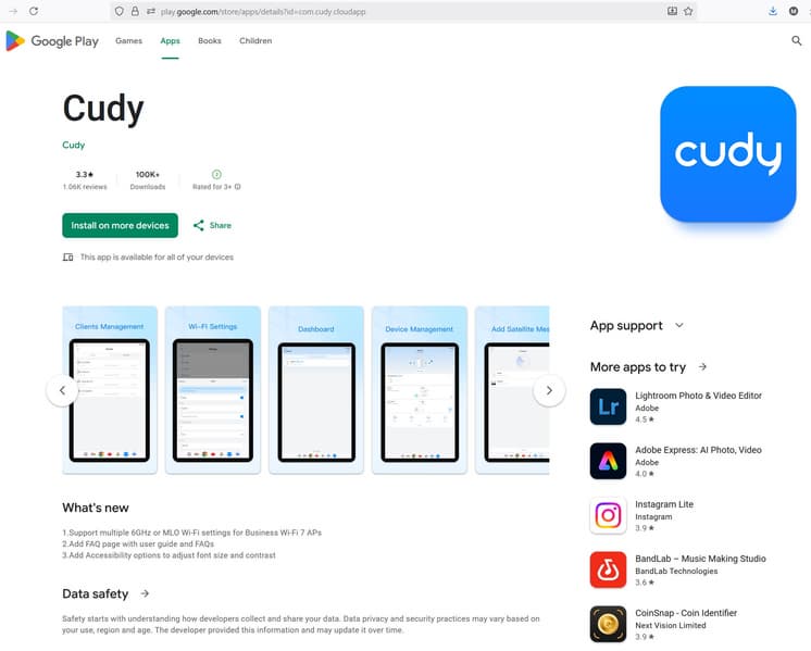 Помимо привычного веб-интерфейса доступ к роутеру можно получить из облака. Для этого следует установить на смартфон фирменное приложение Cudy.