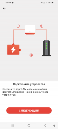 Подключаем кабель WAN (от провайдера) к любому из коннекторов RJ-45, расположенных на задней поверхности блока. Включаем питание. После загрузки верхний индикатор начинает мигать синим; по умолчанию Halo создает беспроводную сеть для настройки системы. К ней нужно подключиться из среды Android обычным способом, как к любой другой сети Wi-Fi.
