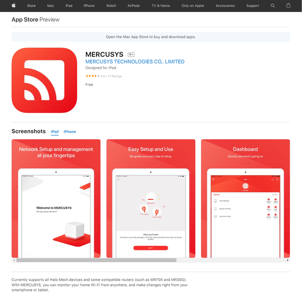 Для создания mesh-сети следует в обязательном порядке установить на смартфон или планшет фирменное приложение Mercusys, которое можно загрузить устройств на Android и iOS соответственно из Google Play и App Store.