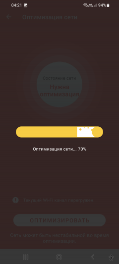 Первыми следуют опции настройки беспроводной сети с выбором предпочтительного диапазона (2,4 ГГц, 5 ГГц или оба). Функция Smart Connect (доступная под разными названиями для большинства конкурирующих моделей) позволяет объединить сети в диапазонах 2,4 ГГц и 5 ГГц в одну общую, с единым именем и паролем. Впоследствии это «умное подключение» автоматически соединяет клиентов с mesh-сетью в том диапазоне, который обеспечивает наибольшие скорость и эффективность беспроводного соединения. Приложение дает возможность организовать еще и гостевую сеть с доступом без пароля — опять-таки для каждого из диапазонов по отдельности или объединенную. Имеется опция выбора ширины канала в диапазоне 5 ГГц (по умолчанию 160 МГц). Предусмотрена возможность автоматической оптимизации сети для уменьшения влияния помех и повышения качества связи. Что именно при этом делает приложение, неизвестно. Согласно нашему опыту, если запускать оптимизацию раз в час, то она всякий раз будет обнаруживать перегрузку эфира и предлагать предпринять ответные действия.