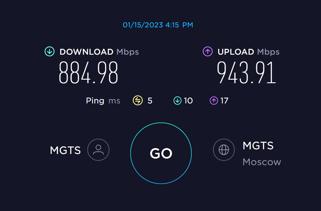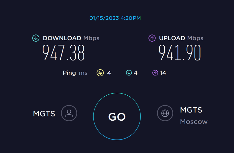 Перейдем к испытаниям скорости маршрутизации. Прежде всего отметим, что специфика пассивной оптической сети GPON не дает нам возможность задействовать PPPoE, PPTP, L2TP и другие протоколы туннелирования на стороне провайдера. По счастью, в этом нет особой нужды, поскольку упомянутые варианты подключений, распространенные во времена господства DSL, совершенно утратили свою полезность и встречаются всё реже. Вдобавок IPoE обеспечивает максимально возможные скорости передачи данных благодаря аппаратной, а не программной обработке пакетов, и в любом случае предпочтительнее.