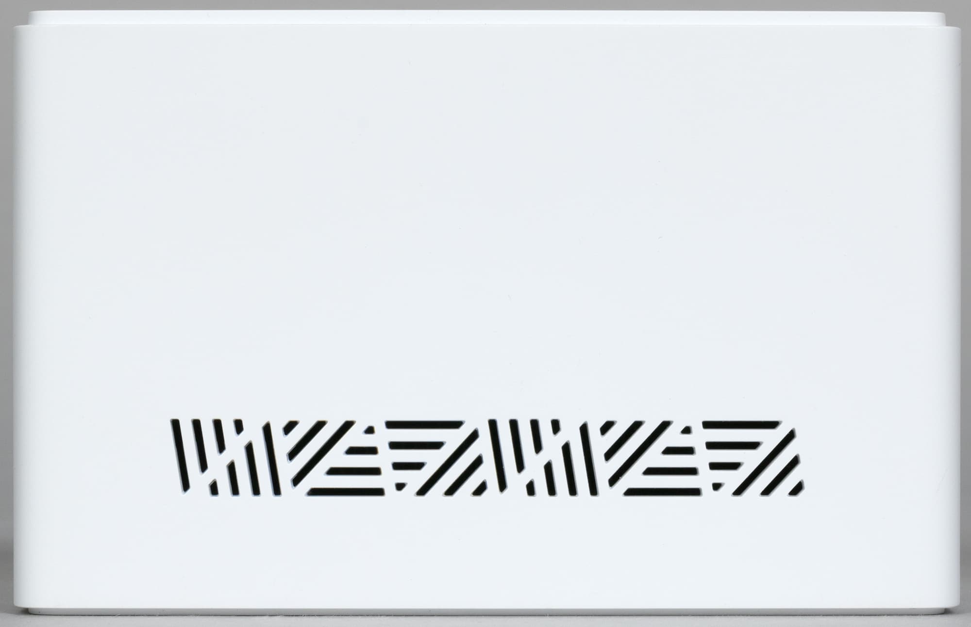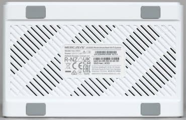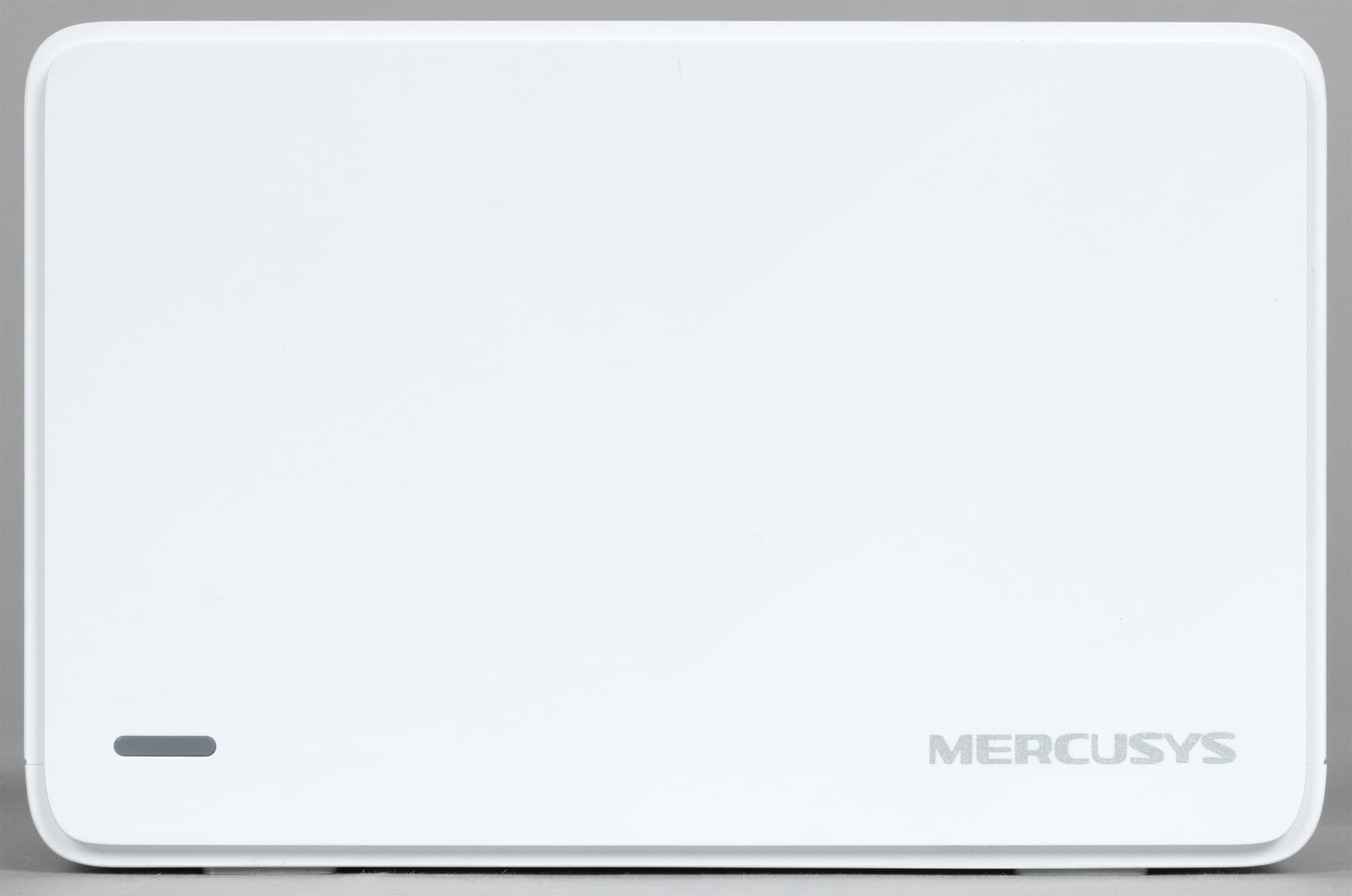 Внизу слева на лицевой панели блока имеется сигнальный светодиод, а справа — логотип торговой марки Mercusys. На задней панели сосредоточены (слева направо): коннектор адаптера питания, отверстие для доступа к кнопке сброса (reset) и три разъема RJ-45 для подключения кабеля Ethernet UTP (витая пара). В отличие от многих аналогичных устройств других производителей, у каждого из трех разъемов имеются светодиодные индикаторы подключения. Правда, они горят постоянно и не отображают миганием процесс пересылки пакетов. На днище видны щели для пассивного забора воздуха для охлаждения разогревающихся при работе внутренностей. На верхней панели имеется скромная по площади решетка выходного тракта системы охлаждения, через которую нагретый теплоноситель пассивно покидает внутренний объем блока.