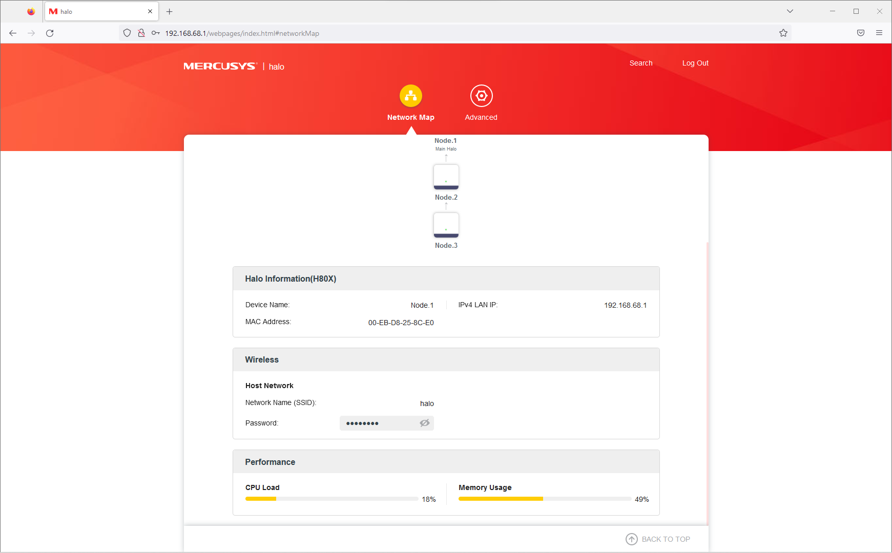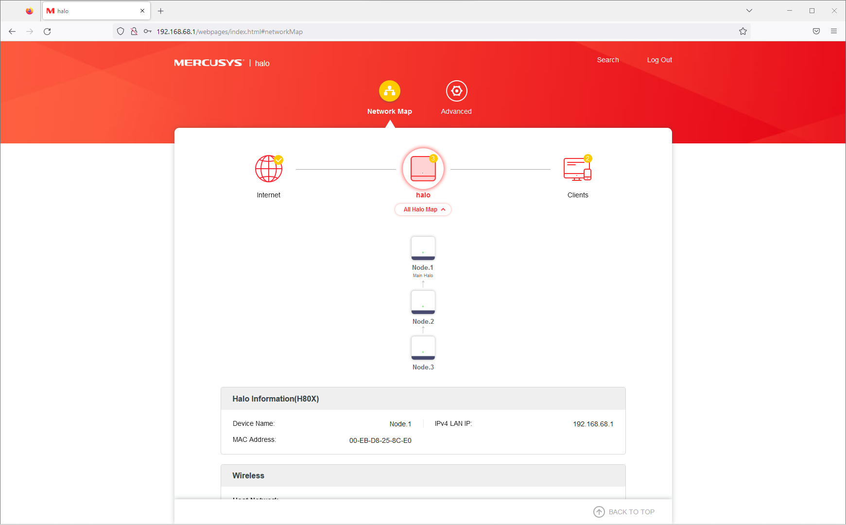Помимо мобильного приложения реализован и веб-интерфейс, однако его функциональность очень сильно ограничена. На момент подготовки настоящего обзора поддерживается только английский язык. После подключения клиентского устройства к первому узлу (роутеру) посредством прилагаемого в комплекте патч-корда следует ввести в адресной строке браузера IP-адрес и ссылку на веб-страницу, например, 192.168.1.0/webpages/index.html.