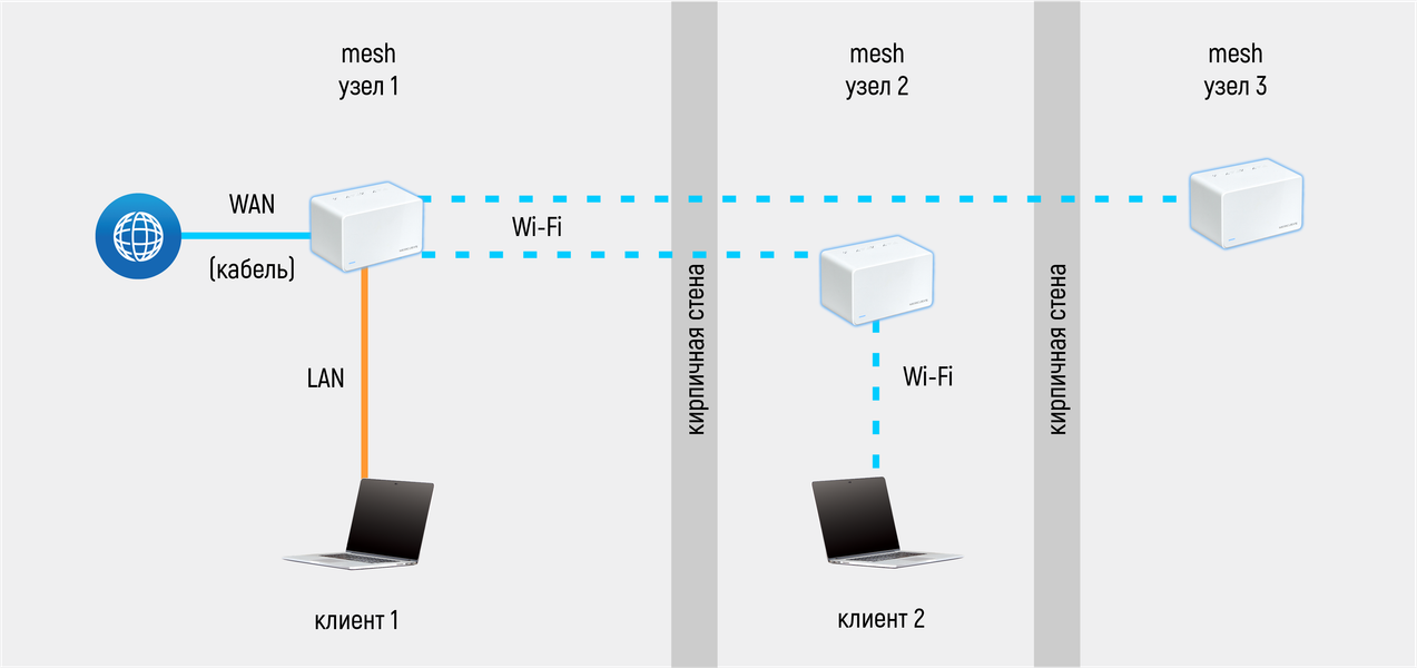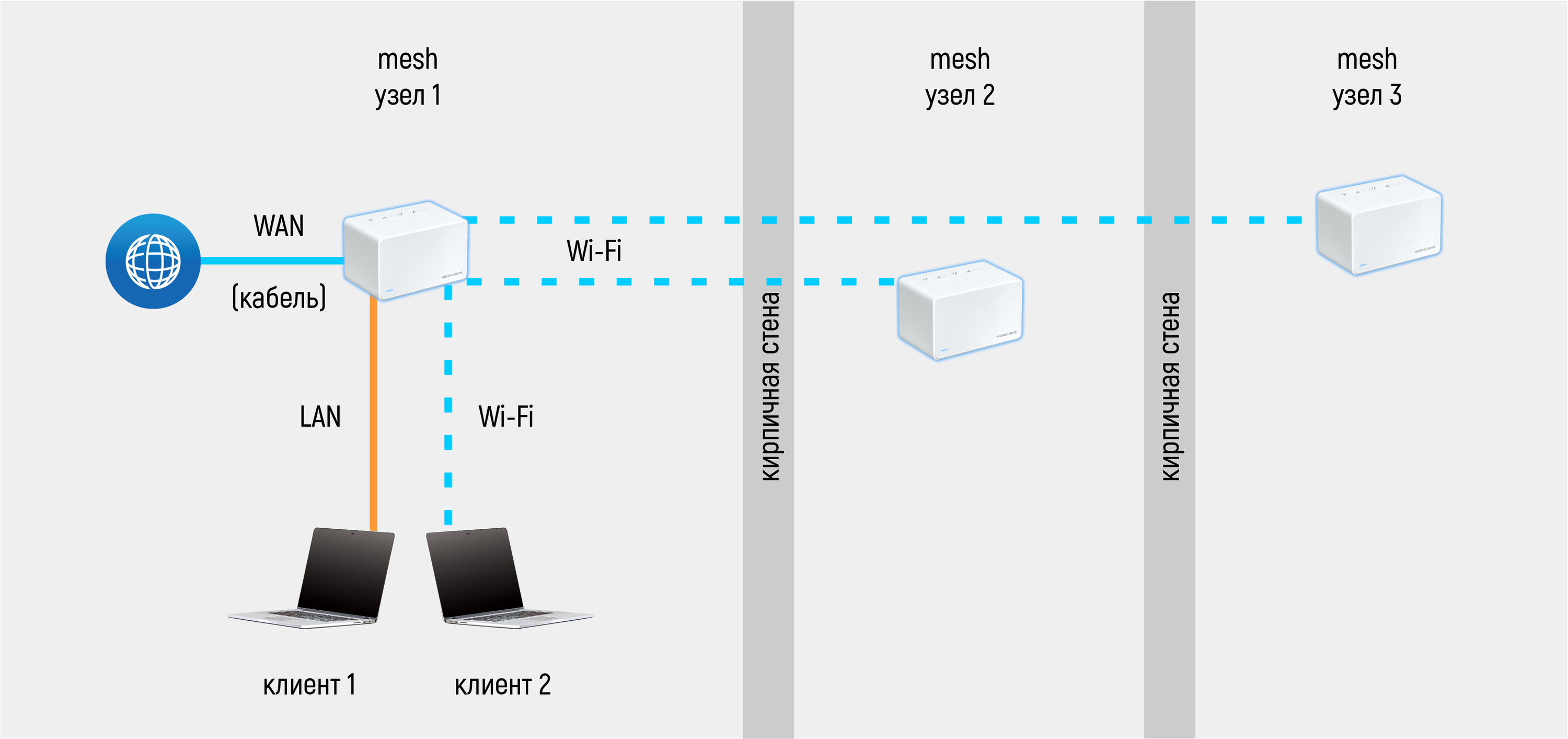 Жилой фонд страны растет, площади квартир и индивидуальных домов увеличиваются, и один-единственный роутер уже не в состоянии обеспечить в них адекватное беспроводное покрытие, из-за чего за приемлемым по скорости доступом в интернет часто приходится бегать в другую комнату или на другой этаж. Для решения этой проблемы придуманы домашние mesh-системы — наборы приемопередатчиков Wi-Fi, способных вместе охватить значительные площади современных жилищ. Достоинствами таких систем обычно называют простоту их установки, возможность расширения зоны покрытия за счет добавления новых устройств (узлов) и высокие скорости соединения. Совсем недавно они соответствовали требованиям Wi-Fi 5, но уже в течение 2-3 лет происходит освоение Wi-Fi 6, из-за чего грань между проводным и беспроводным интернет-доступом практически окончательно стерлась.
