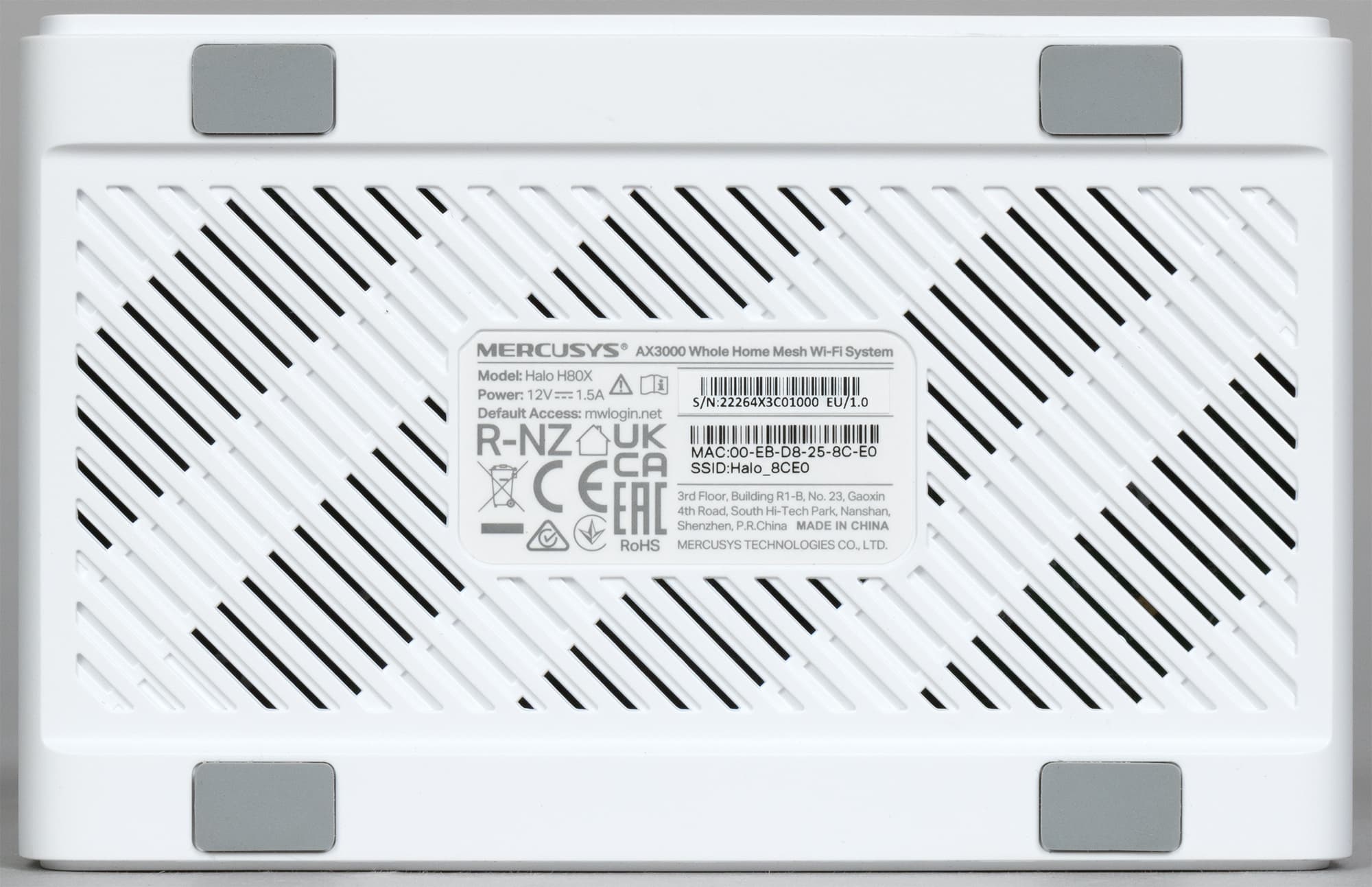 Аппаратное оснащение Halo H80X включает систему на кристалле (SoC) Qualcomm IPQ0518 с двухъядерным процессором ARM Cortex A-53 (тактовая частота 1 ГГц). Аналогичное решение используется во многих других устройствах, например, в роутере TP-Link Archer AX72, который побывал у нас в гостях в ноябре 2022 г. Эта SoC работает в тандеме с Qualcomm QCN6102, отвечающим за диапазон 5 ГГц с шириной канала 160 МГц и скоростью транспорта 2402 Мбит/с, а также за поддержку множественных многопользовательских подключений с задействованием одновременно двух антенн на прием и передачу (2×2 MU-MIMO).