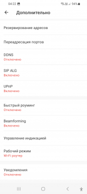 В блоке дополнительных инструментов можно настроить IP-адреса, зарезервировать их пул для автоматического назначения сервером DHCP, активировать IPTV, клонирование MAC-адреса, добавить сервис переадресации портов и службу динамических адресов (DDNS) с возможность получения бесплатного субдоменного имени на MercusysDDNS.com. Реализованы SIP ALG, UPnP для распределения медиаконтента, функция быстрого роуминга и пространственного моделирования сигнала (Beamforming).