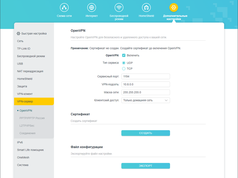 Для организации OpenVPN вначале генерируем сертификат и создаем файл конфигурации, который затем подставляем в оригинальное клиентское приложение.